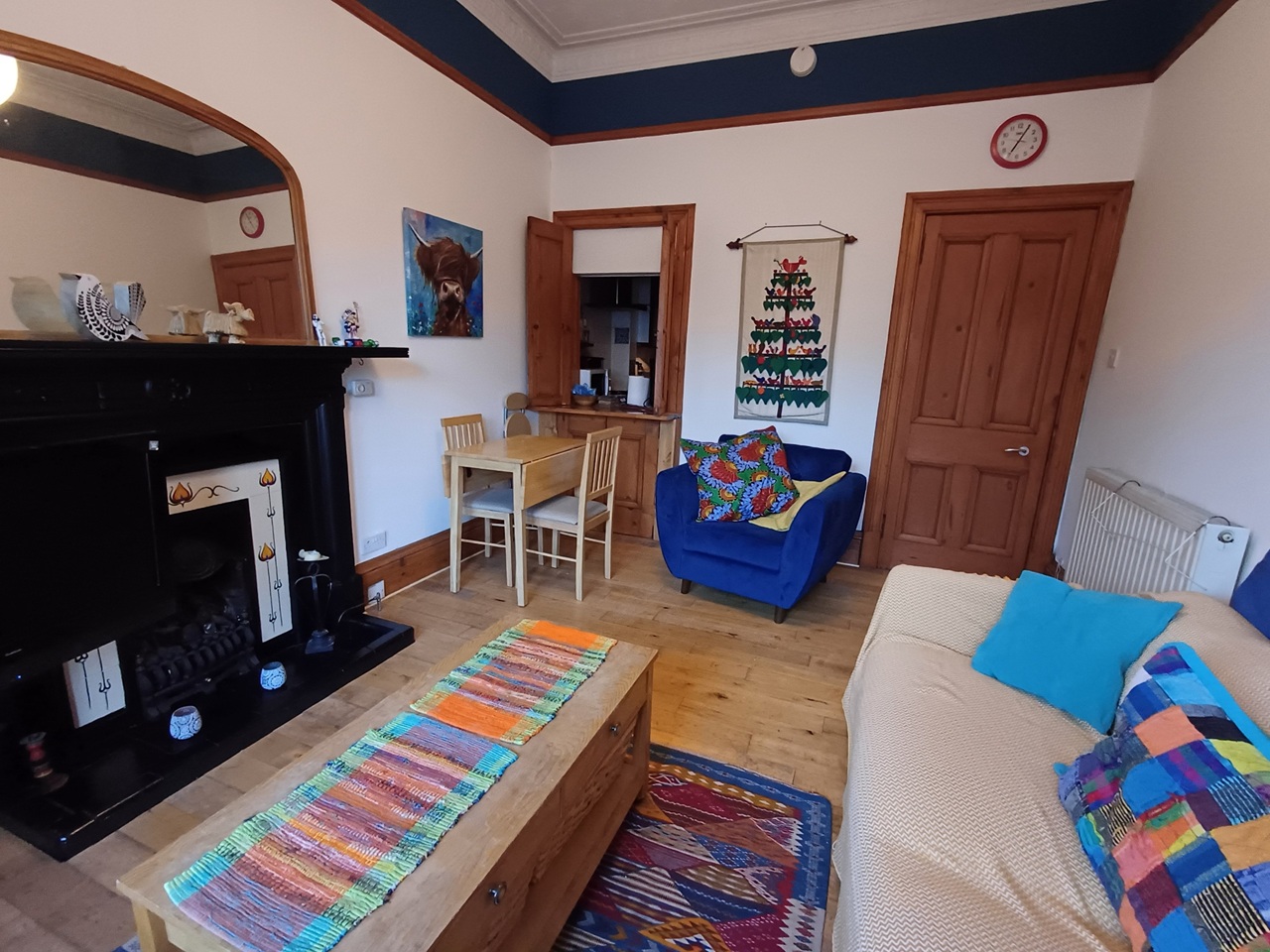 The flat is situated in the Whiteinch area and faces onto Victoria Park. If driving, there is no driveway or garage, however plenty of free parking on the road. There are bus stops within easy reach, that will take you into Glasgow or Partick. Alternatively a brisk 20min walk will take you into Partick where there is a main bus station, trainline and subway station.