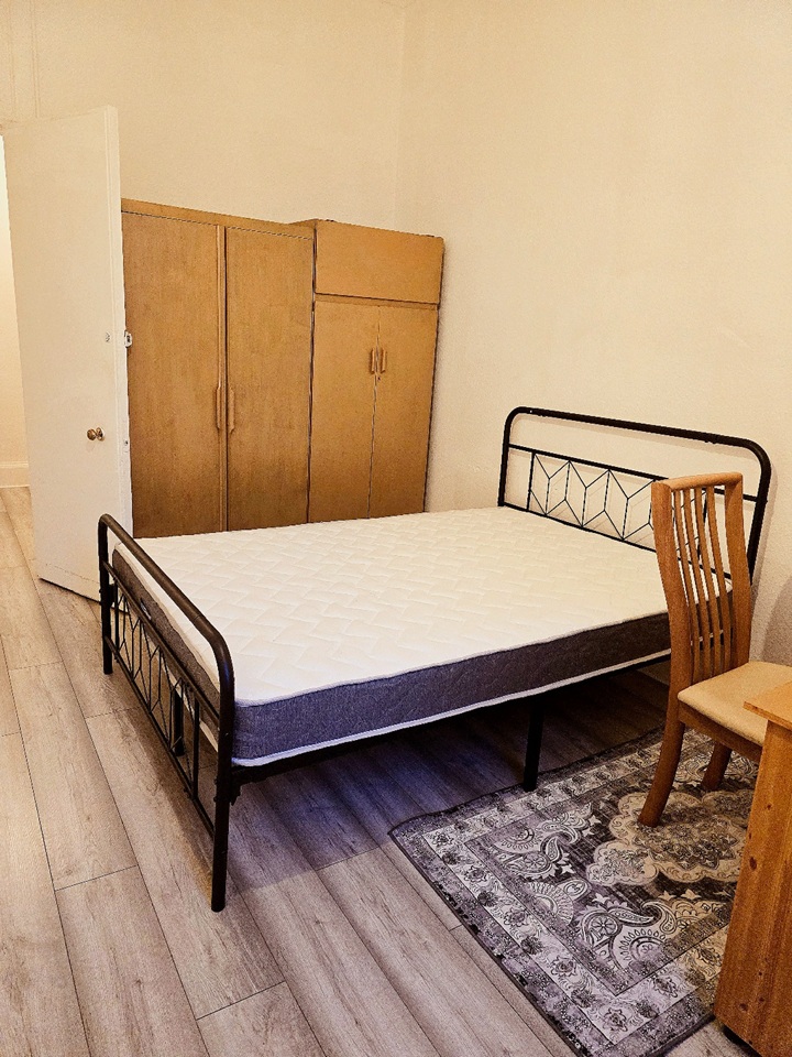 Double Bedroom: Double (6,4) mattress and bedframe/ roller blind and double glazed window/ 2 medium sized wardrobes/ working desk and chair / floor lamp/ 1 central heating radiator