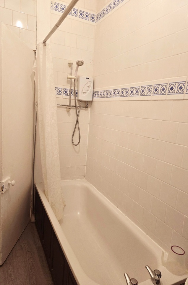 Bathroom: Electric shower/ bathtub/ mirror/ toilet