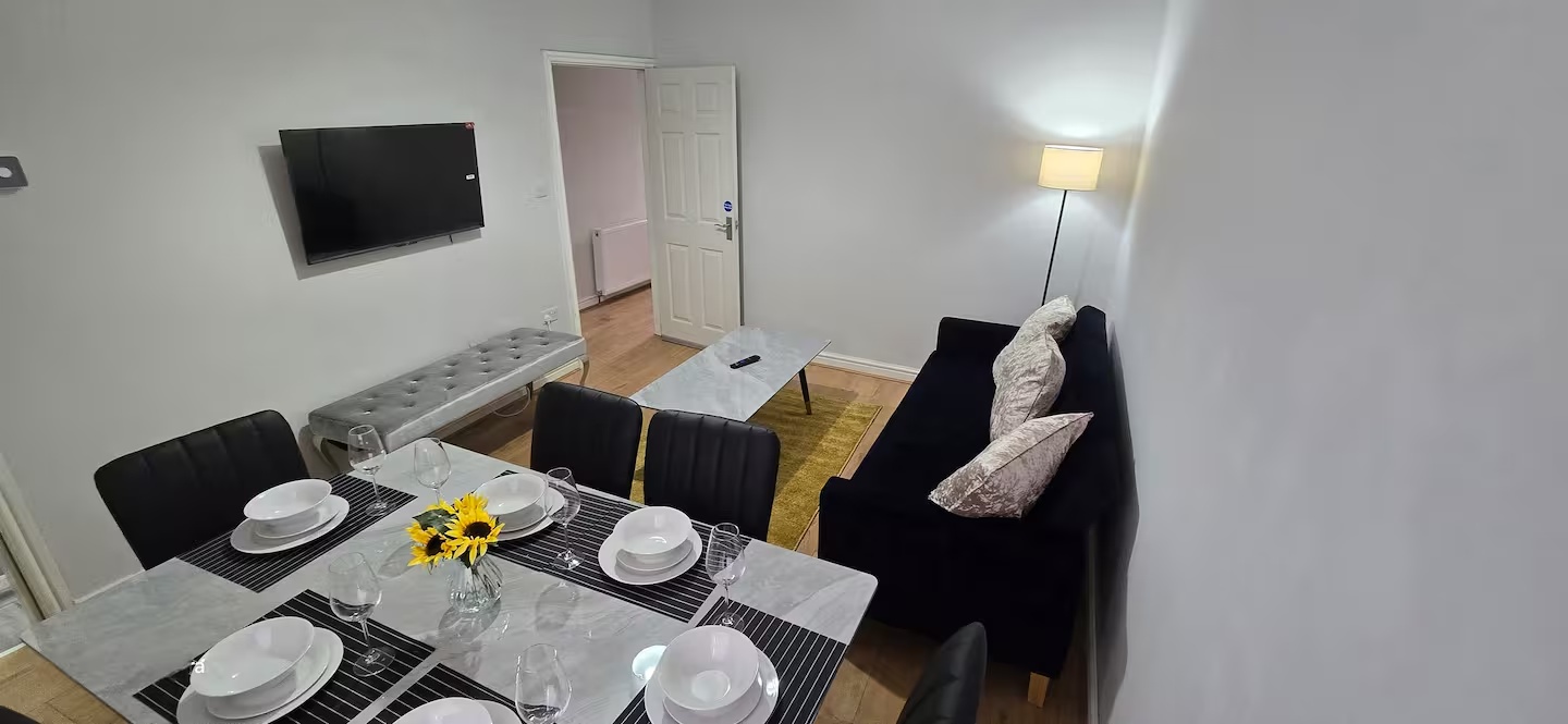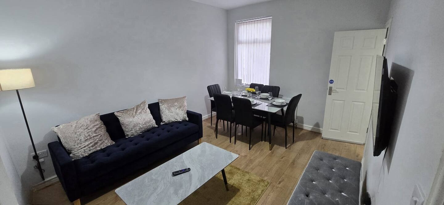 The house comfortably sleeps up to 10 guests, making it ideal for families, business groups, or friends visiting Manchester.
