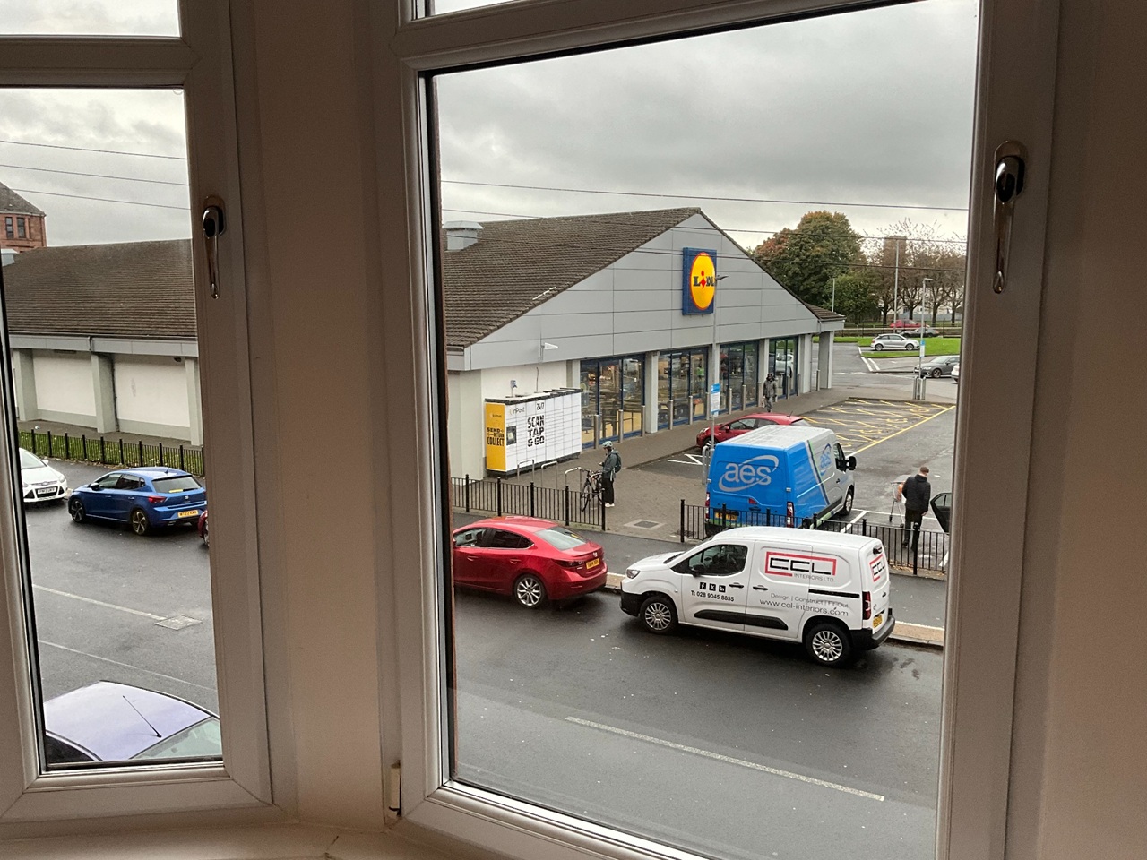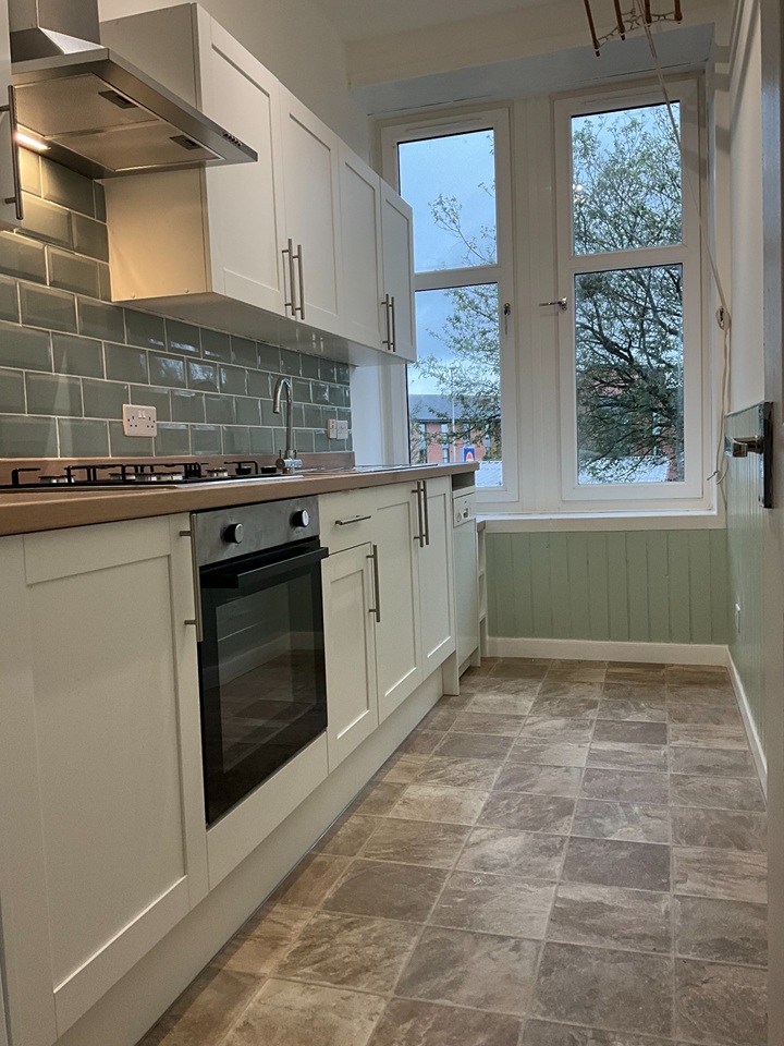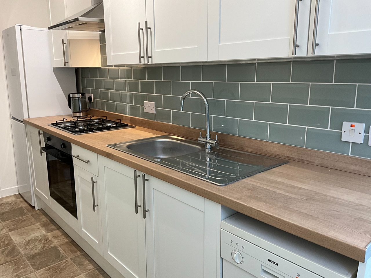 A substantial one-bedroom flat, newly renovated and decorated throughout with a bright south facing lounge, new fitted kitchen, new bathroom with mains rain shower , upgraded central heating new flooring and blinds throughout . There is a large utility hall cupboard with washing machine.The common areas and stairwell are well kept and features a secure entry system, the street is quiet with on-street parking and is situated right across from a supermarket.
