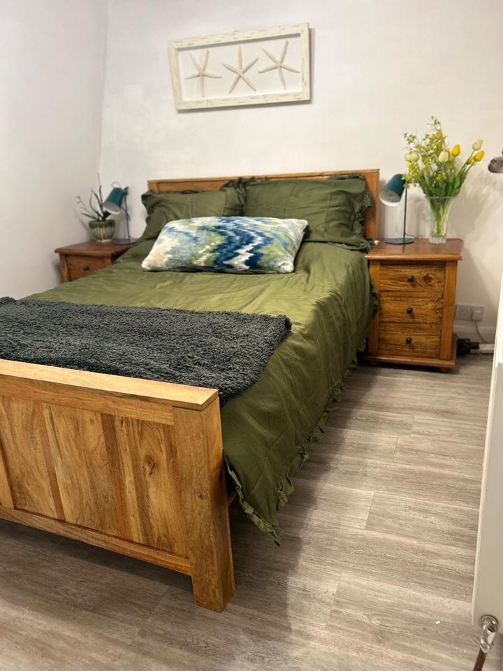 This light-filled, tastefully decorated double bedroom offers a comfortable and welcoming living space. The room comes fully furnished with: