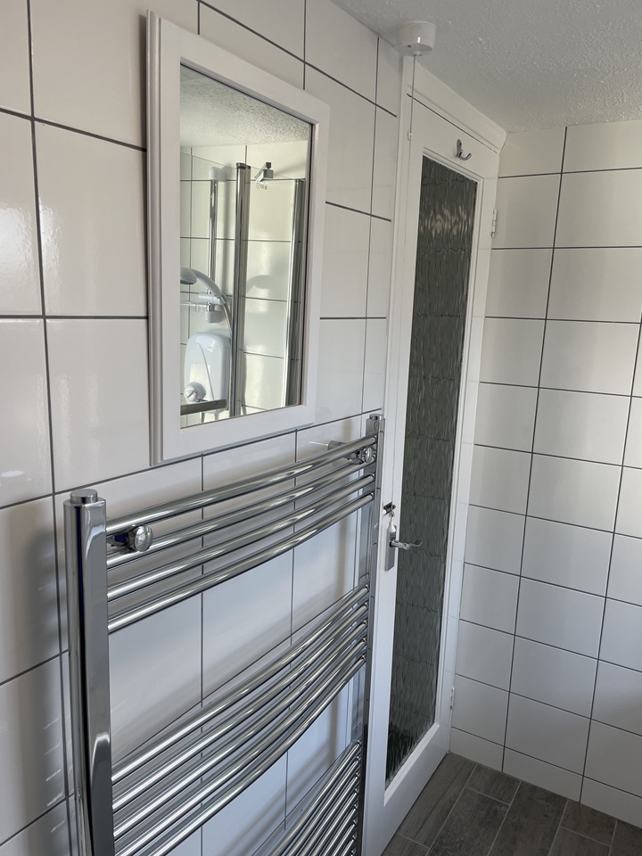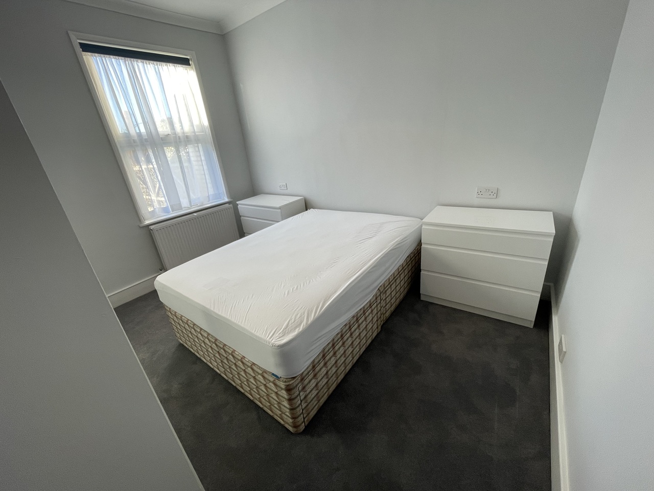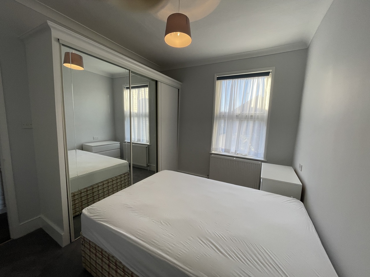 Double bedroom with large built in wardrobe and bed with new mattress. (Headboard on order)