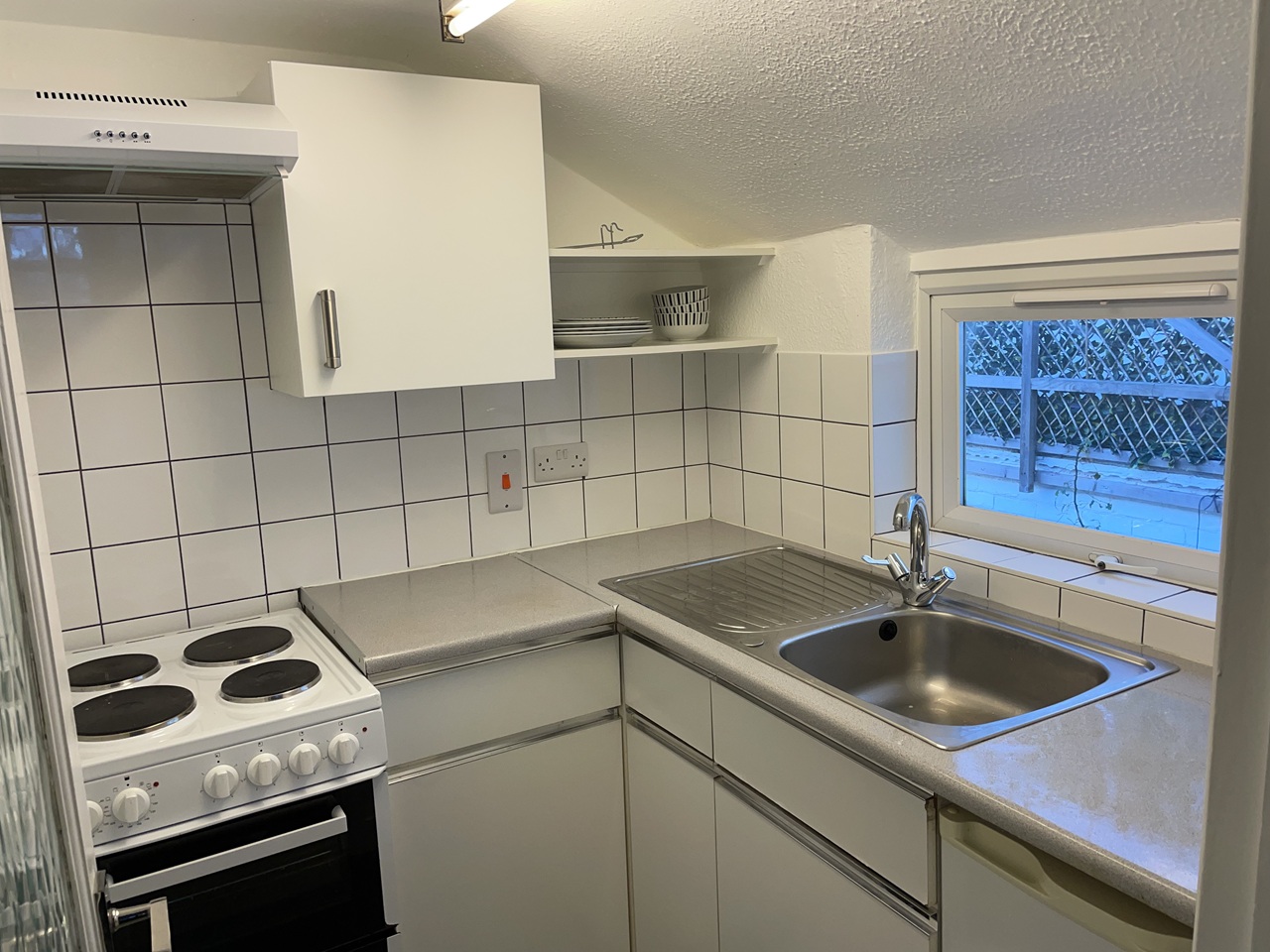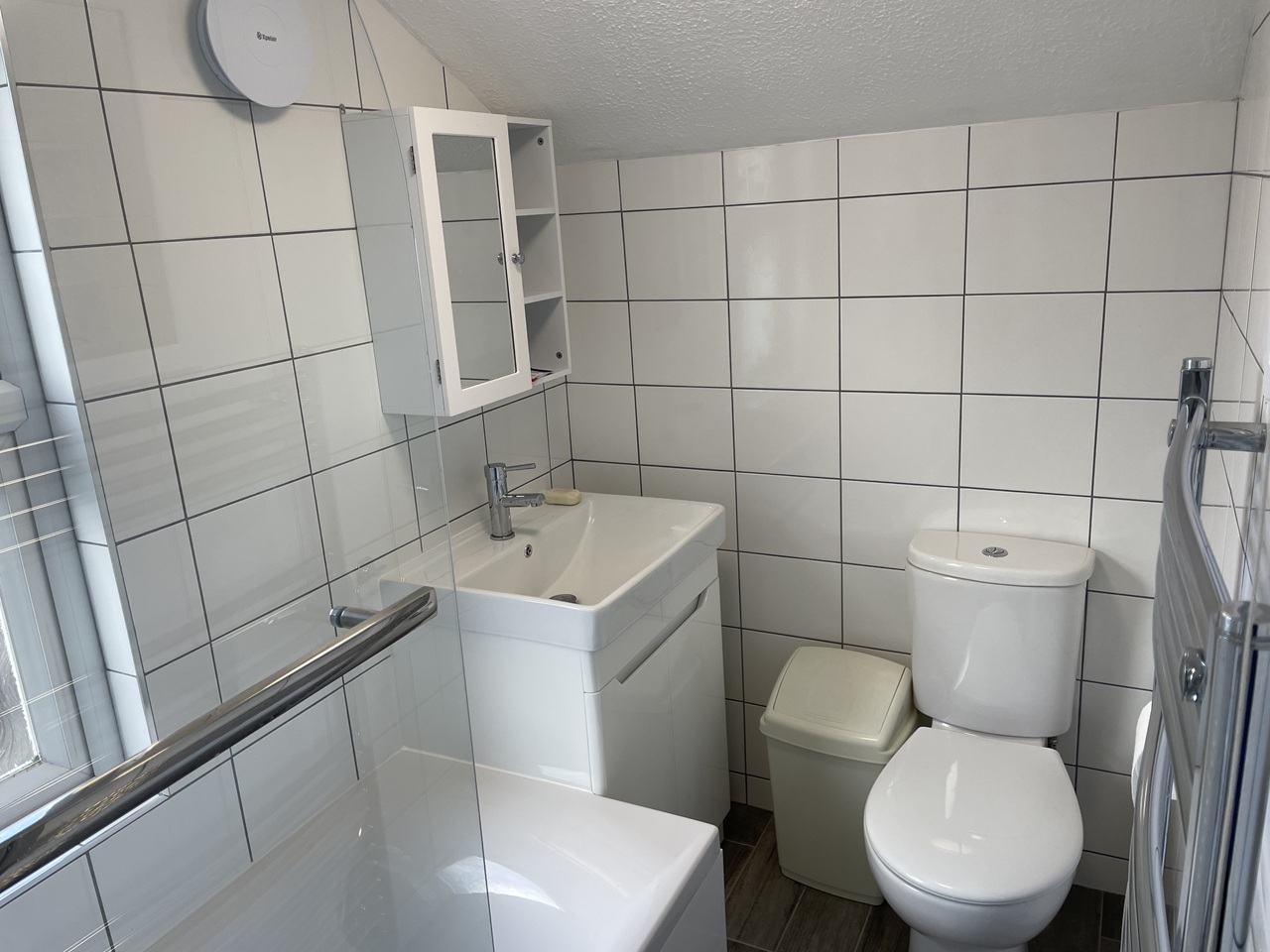 First floor flat over shop at beginning of High Street . Newly decorated and refurbished. New boiler.