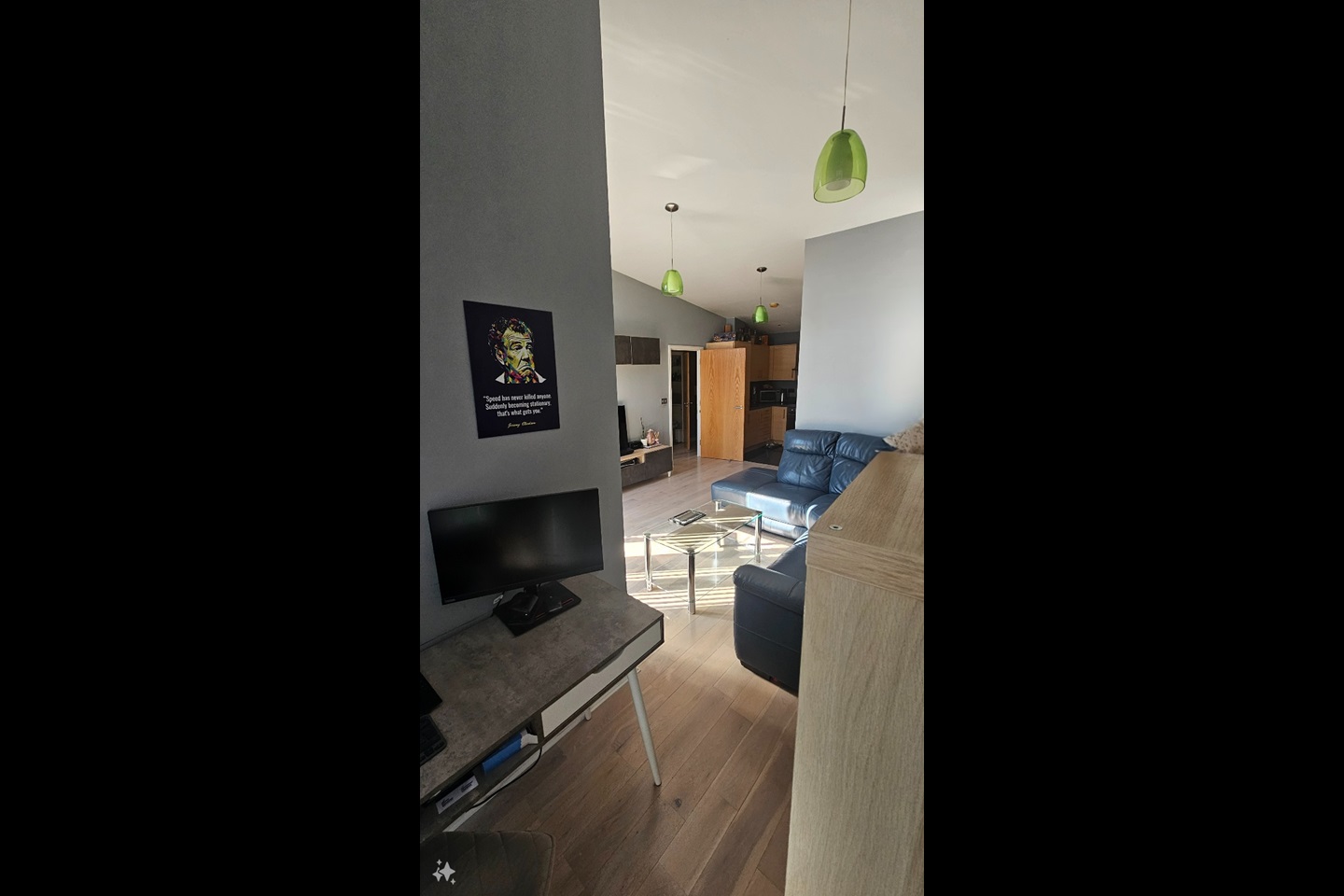 As you step inside, you'll be greeted by an entrance hallway, a warm reception room, adorned with beautiful wood floors that add a touch of sophistication. This space leads seamlessly into the open-plan kitchen, a modern and functional area that's sure to charm any home cook.
