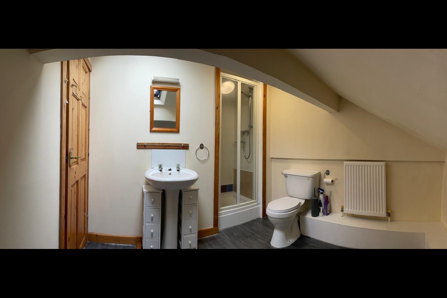 Bathroom with shower.