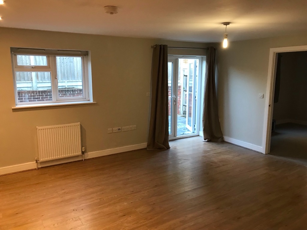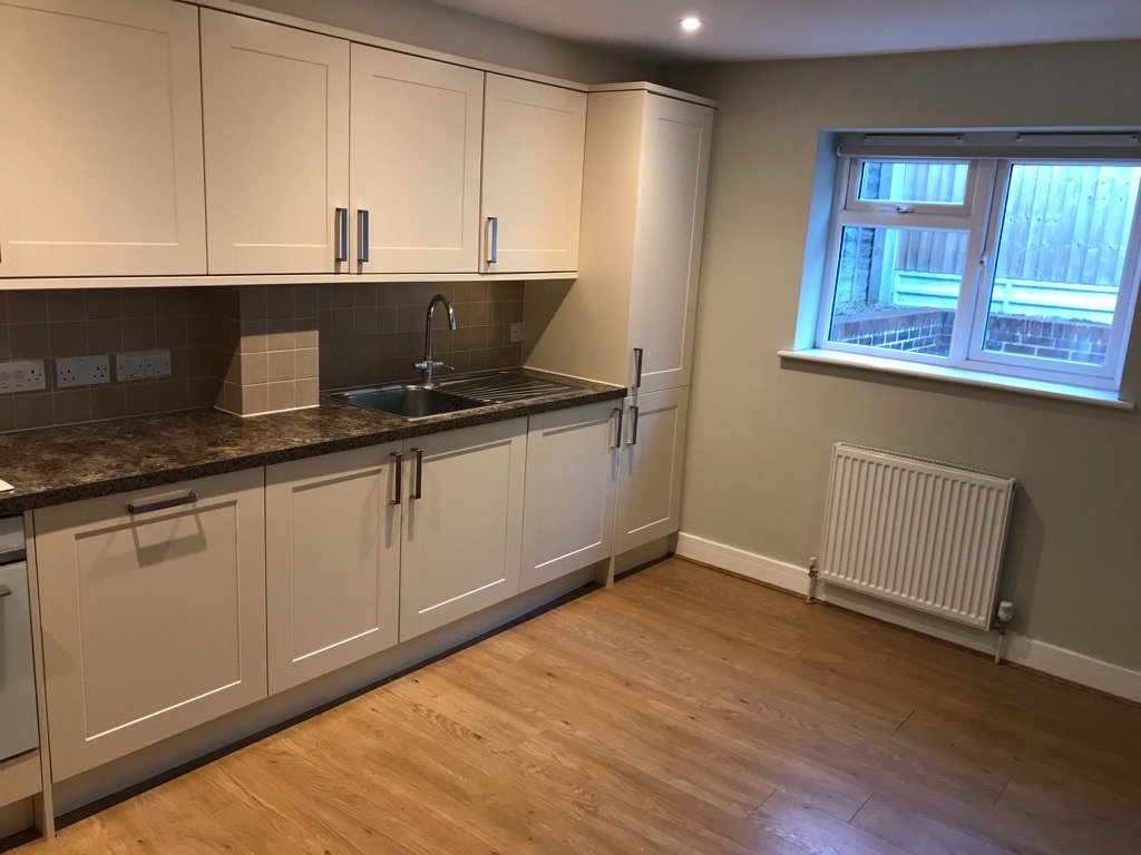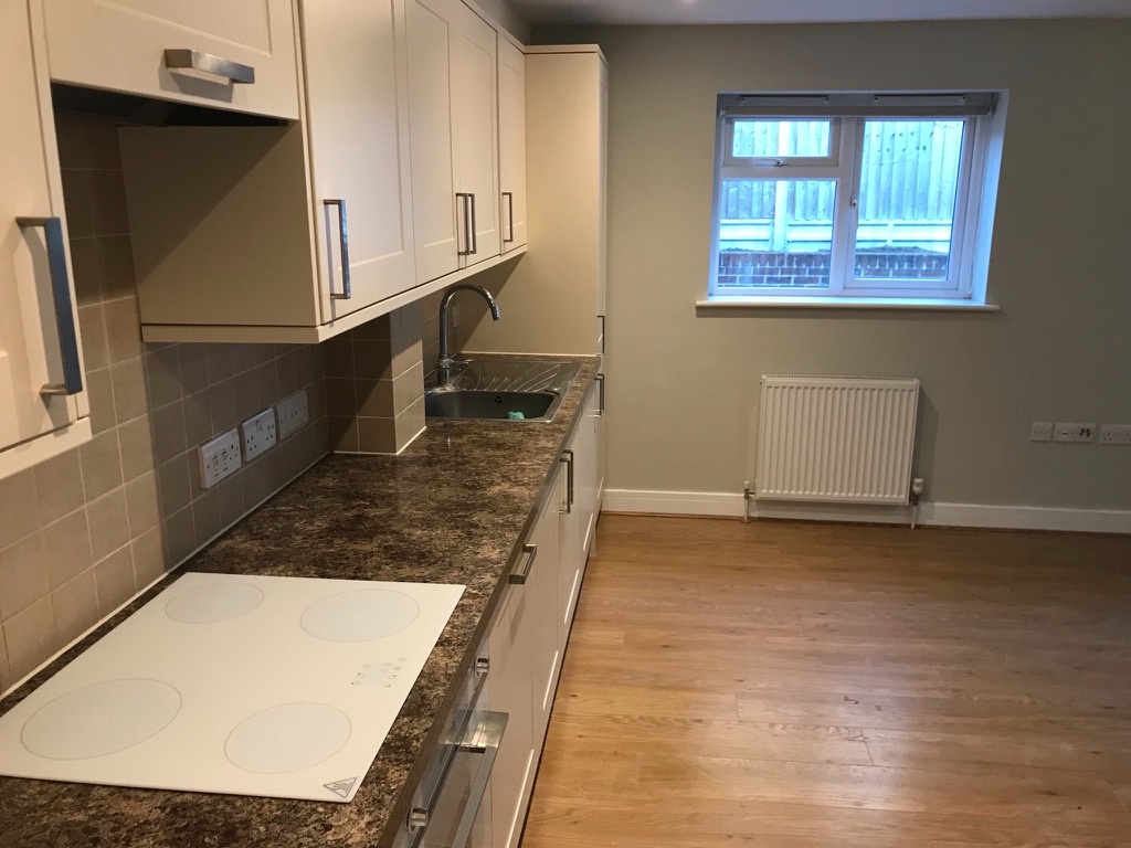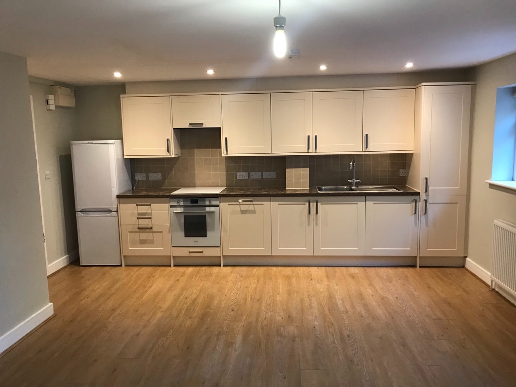 Large open plan living area with built in full size dishwasher/washing machine, Smeg Oven with ceramic hob, extractor and fridge freezer. Double glazed patio doors leading to private courtyard. Wood laminate flooring throughout. 2 x double radiators.