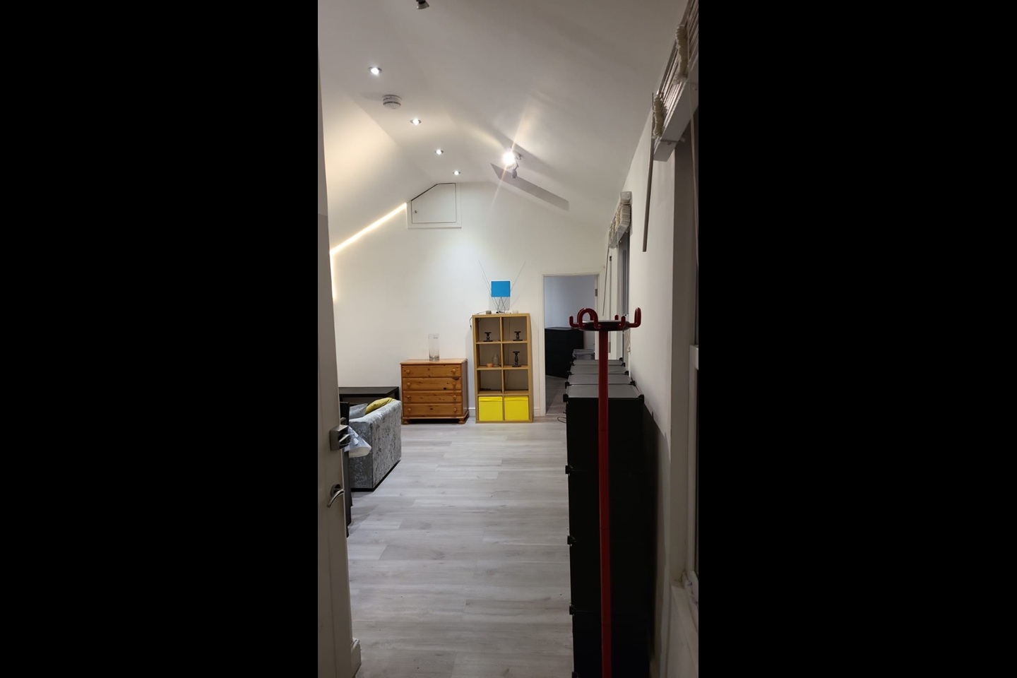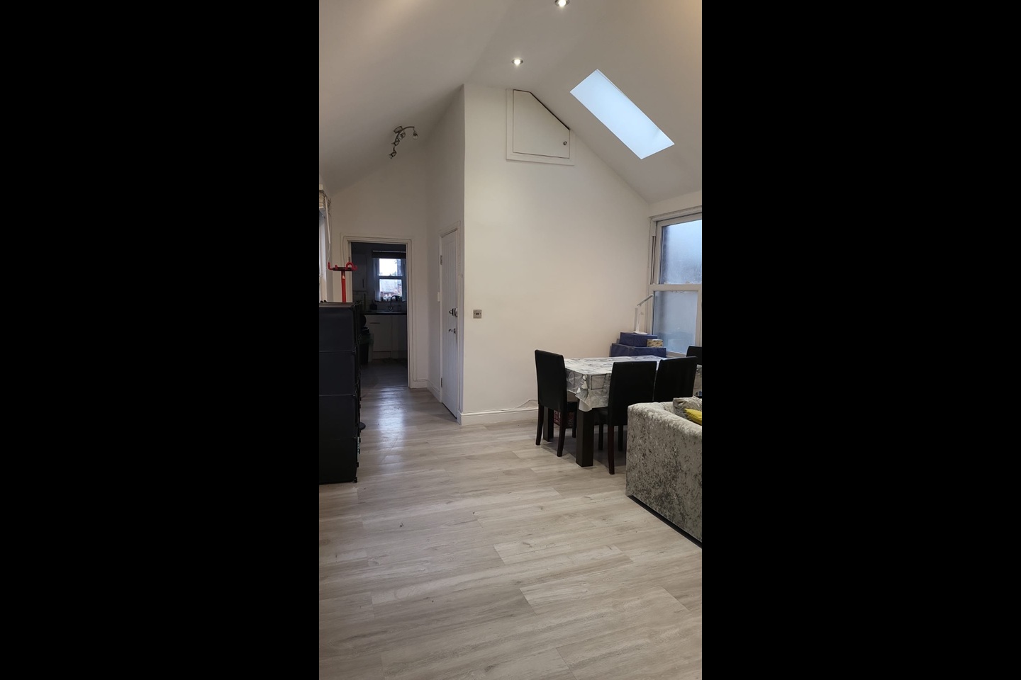 Modern interior with comfortable open living space, fitted kitchen, and stylish furnishings.