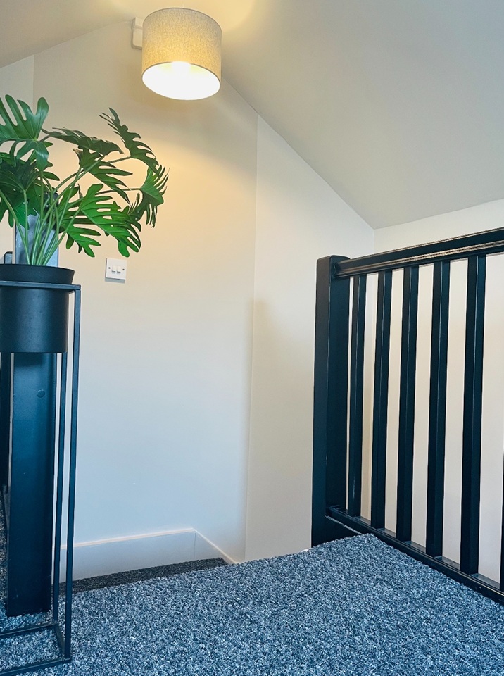 Taking over the whole top floor this spacious room is fully furnished with a double bed and new memory foam mattress, side table, open-wardrobe, desk and chest of drawers.