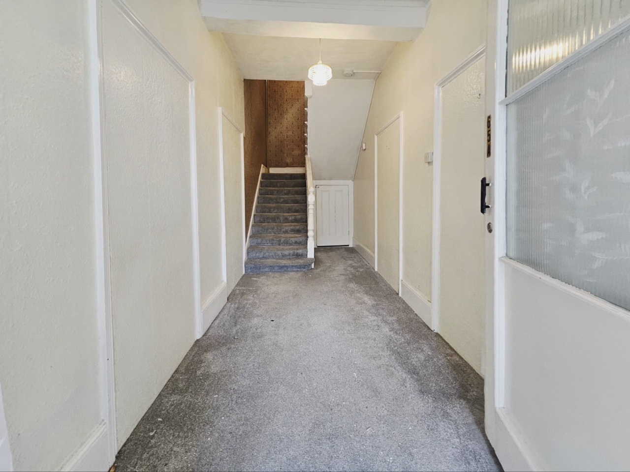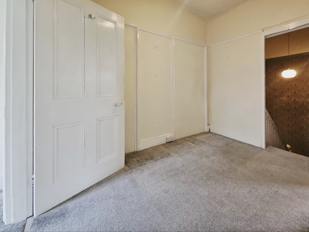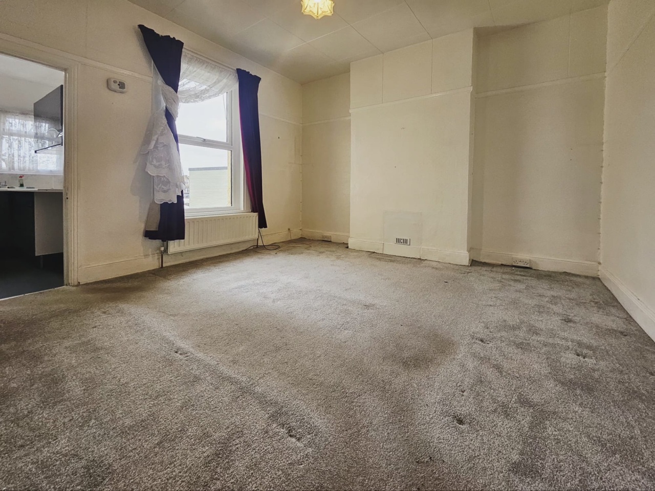 Large entrance hall and landing with large main bedroom and box room, good size lounge through to small kitchen and bathroom.