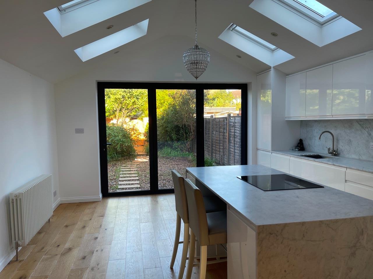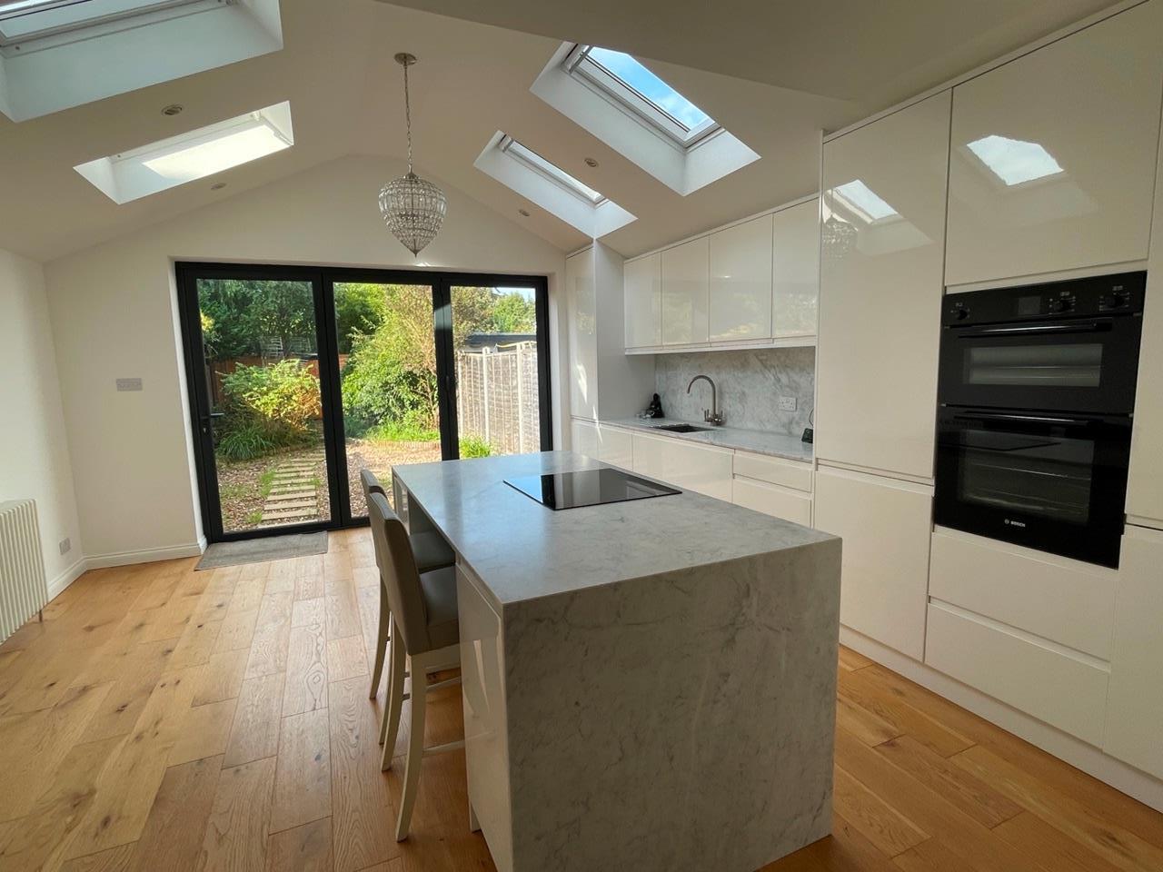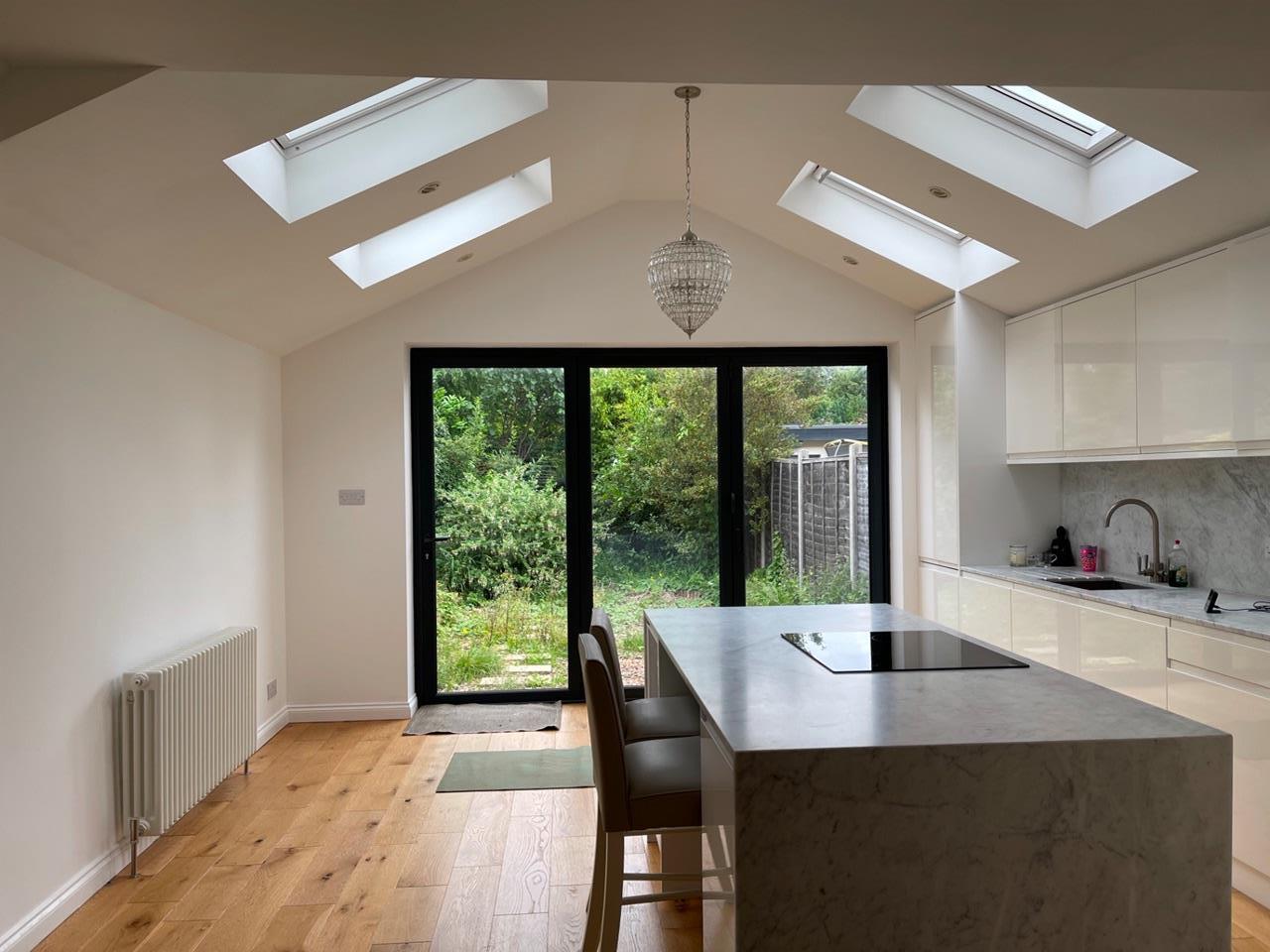 This property is renovated to a high standard, with a bright, sunny, airy, spacious, extended open-plan kitchen, dining space and lounge. The ground floor further benefits from vaulted ceilings and glass bifold doors into the garden, bringing in lots of light. Two double bedrooms and a third bedroom that can be used either as a home-office or small child's bedroom/nursery.