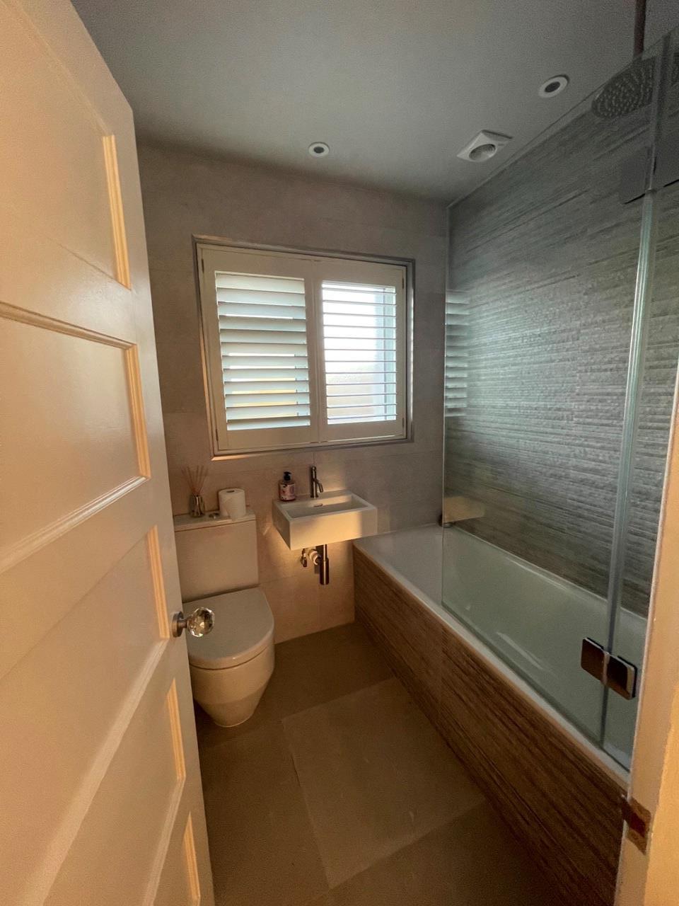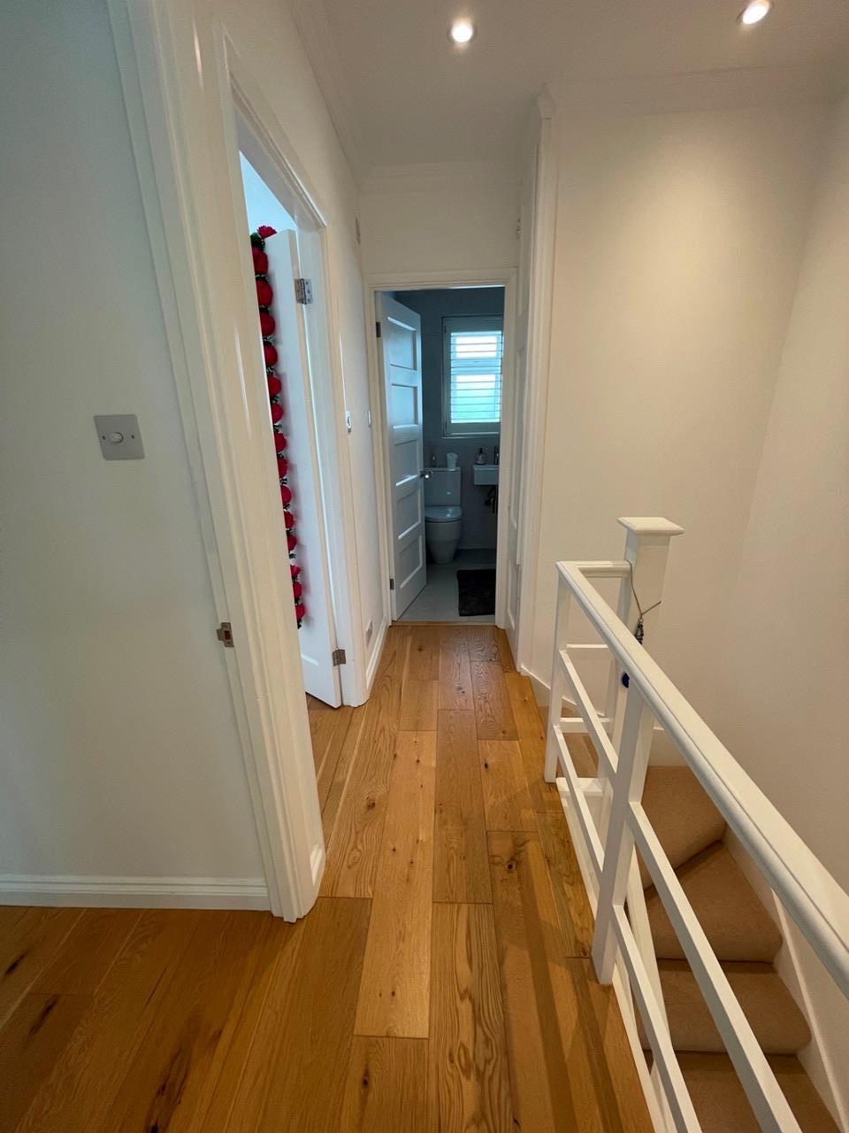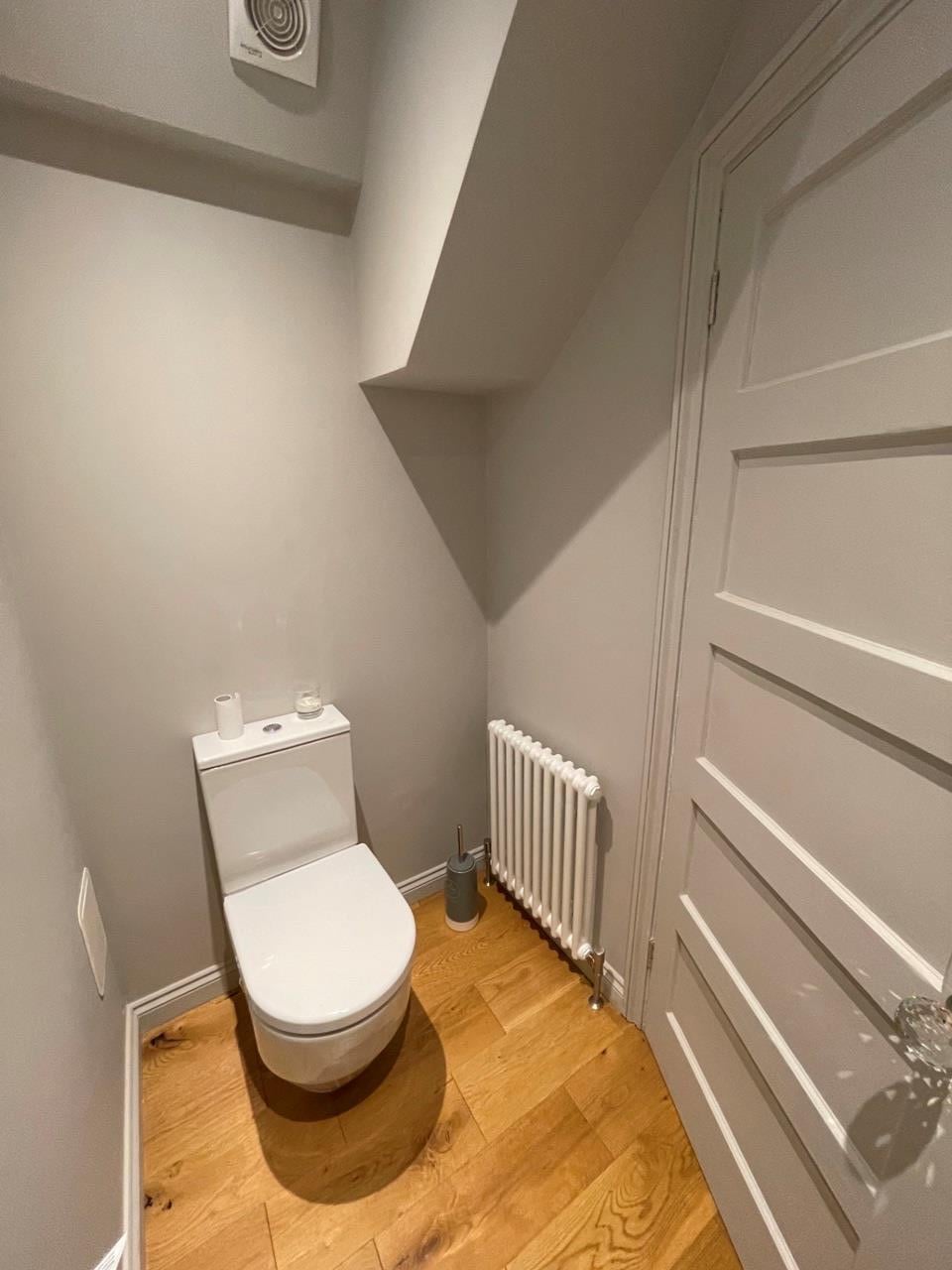 There is a separate WC for guests and visitors in the ground floor, with the main bathroom upstairs fitted with an integrated shower and bathtub.