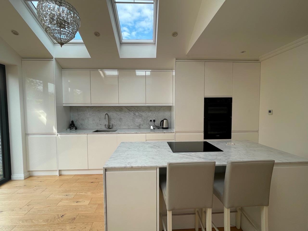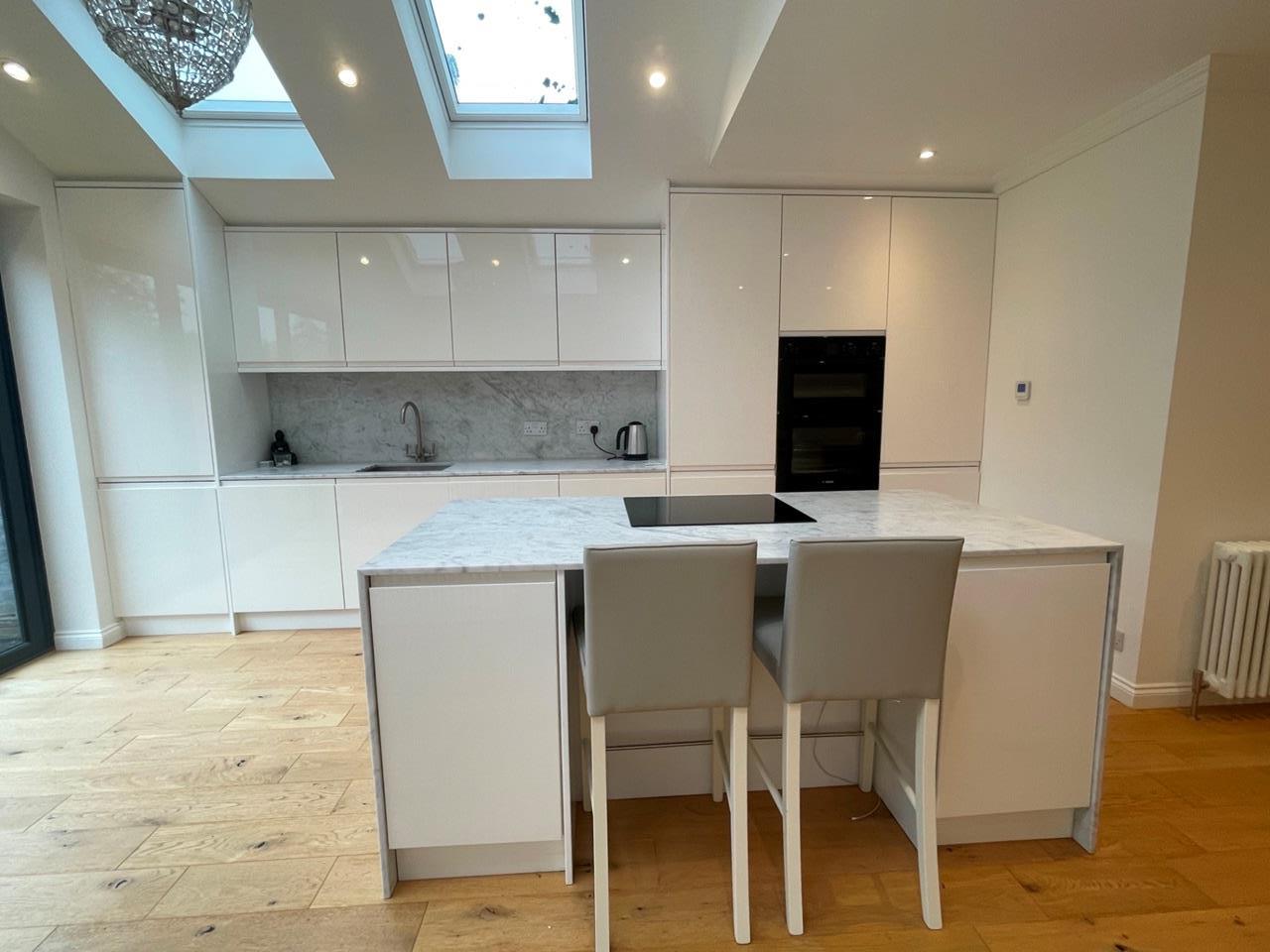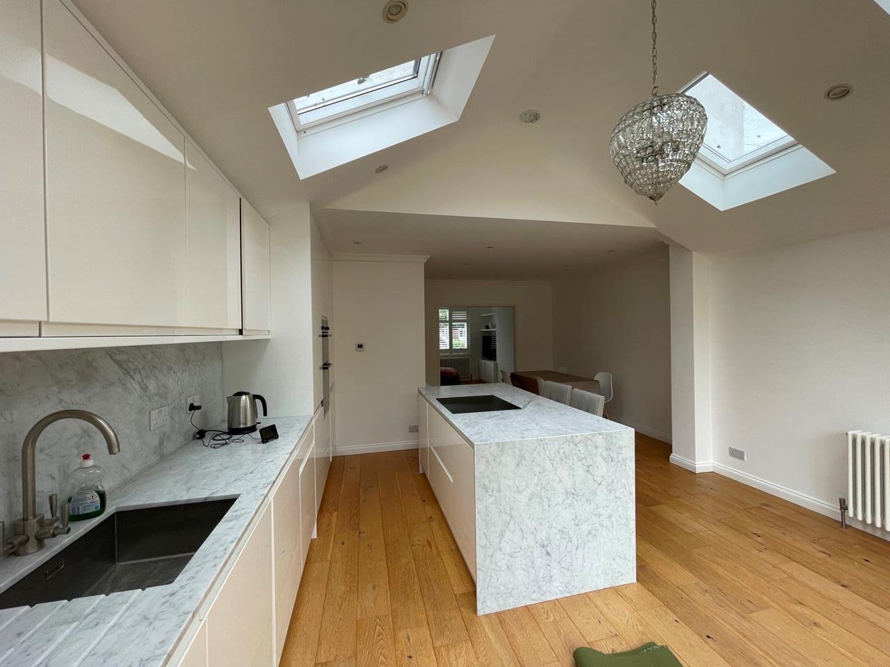 Solid oak floors fitted throughout the property. The kitchen has a clean, fresh design with natural stone worktops and splash backs, as well as fully integrated appliances (including dishwasher and washing machine).