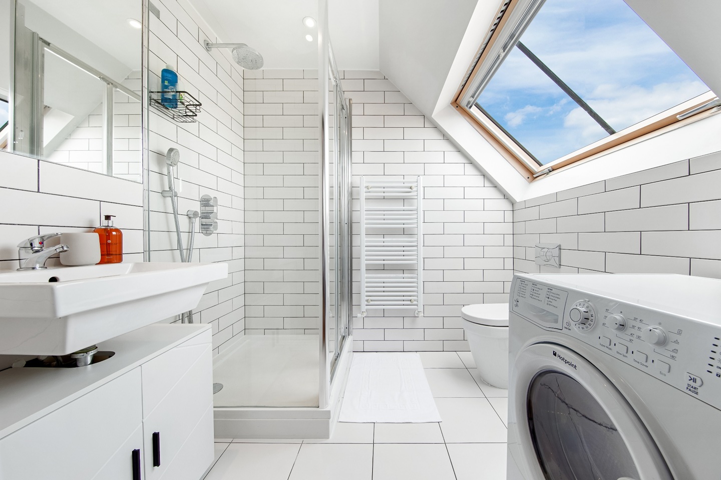 Modern bathroom with shower.