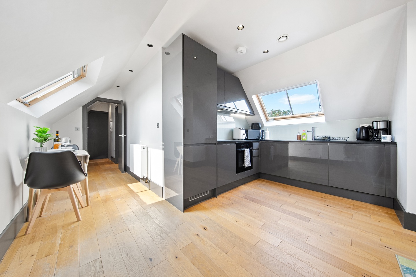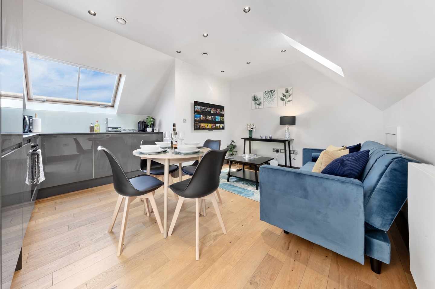 A stylish serviced apartment in the heart of Hampton (TW12), available for monthly rent. Located on the vibrant High Street, just steps away from shops, cafés, and the River Thames, with Bushy Park and Hampton Court Palace nearby.