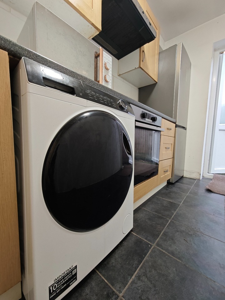 (2) Kitchen: On the ground floor with plenty of storage, electric induction hob / single fan electric oven, tall frost free fridge freezer, washer / dryer.