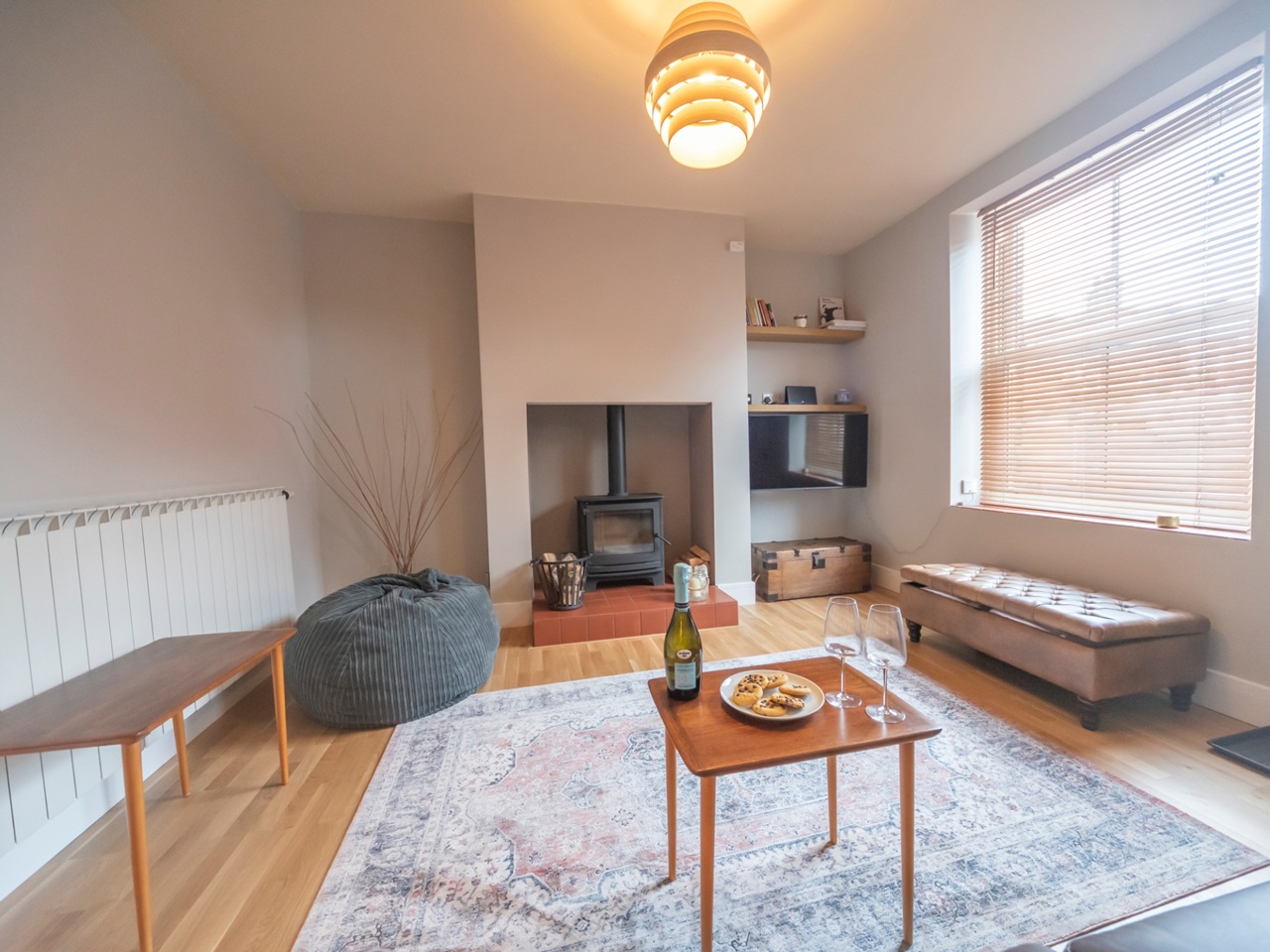 Log burner & double sofa bed