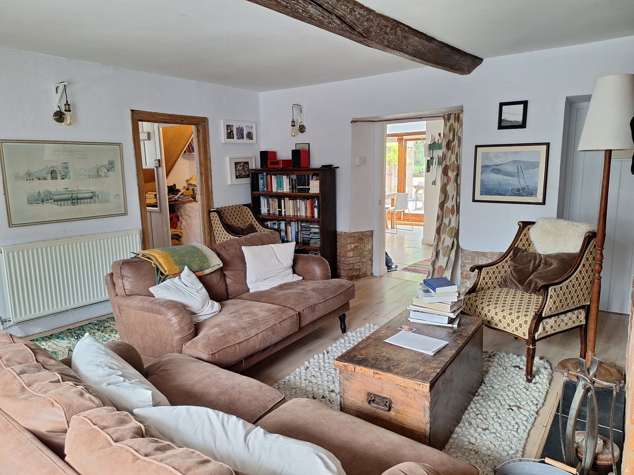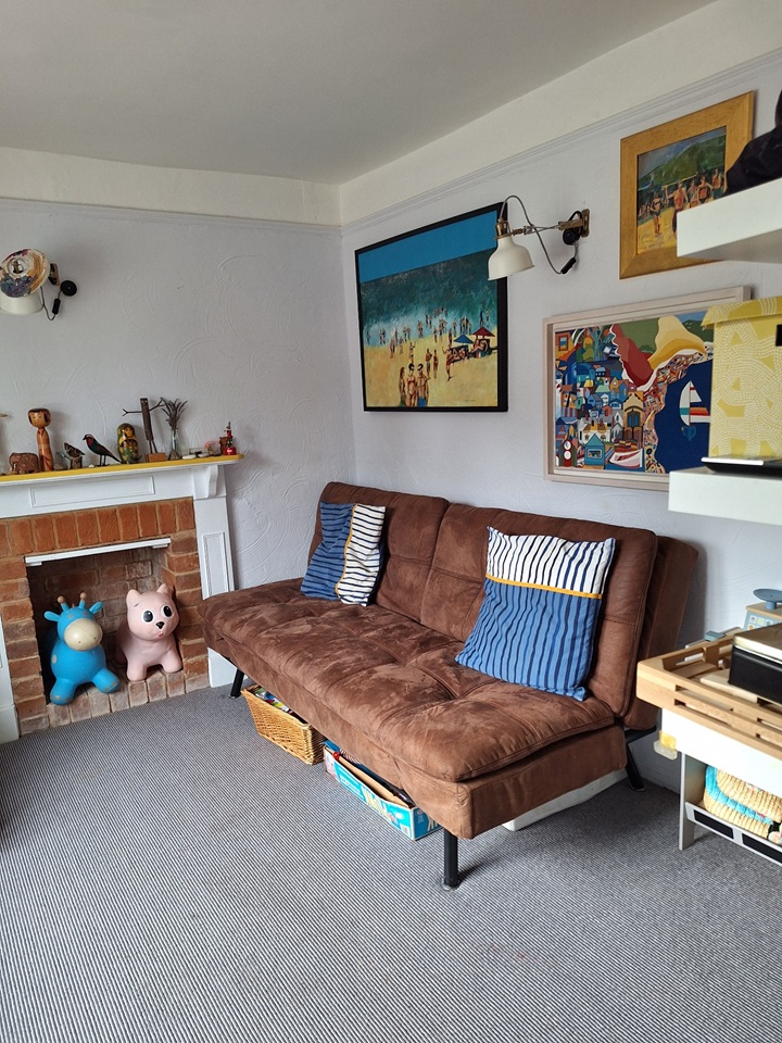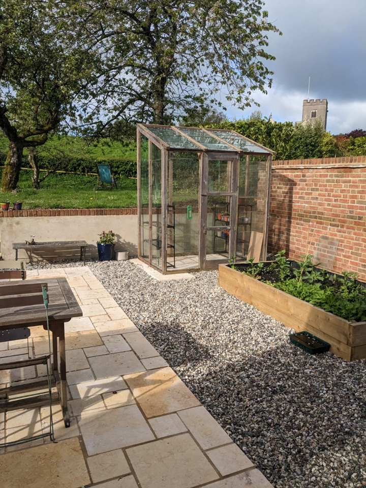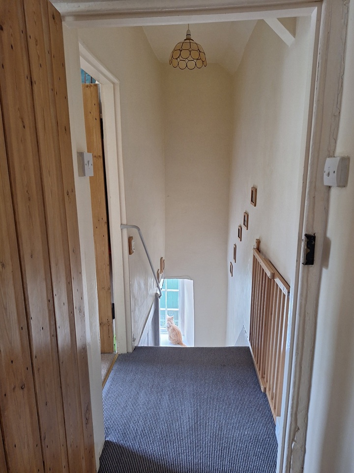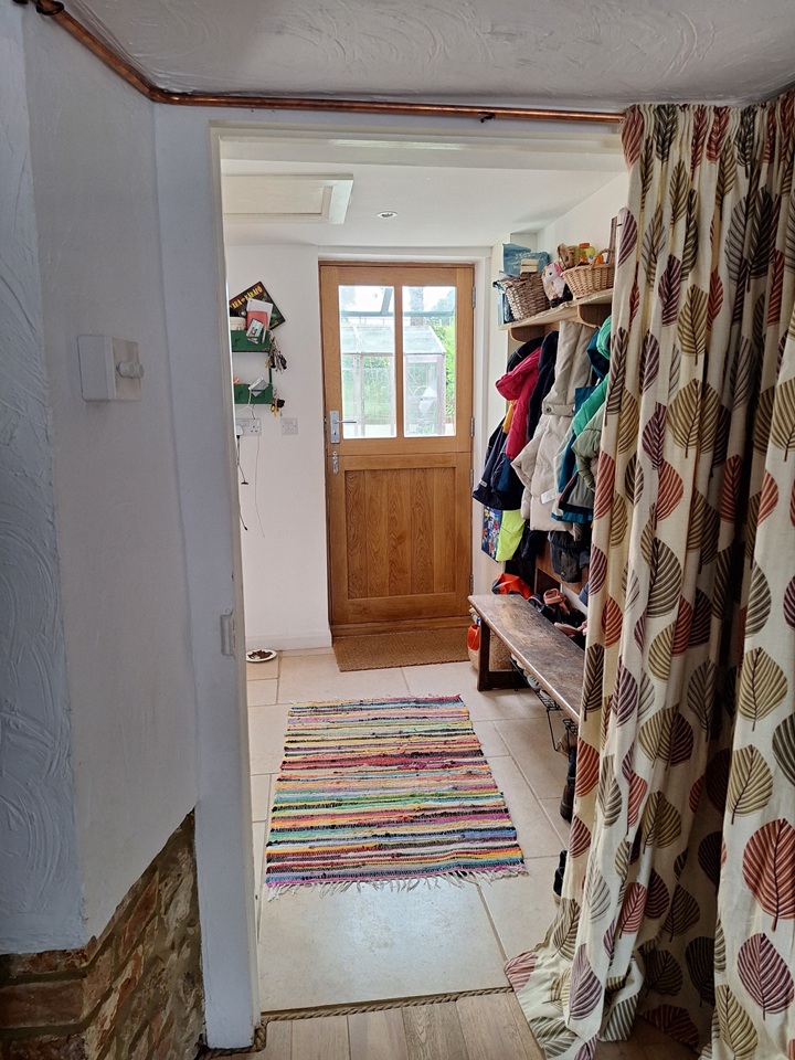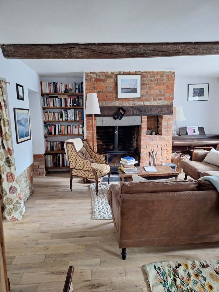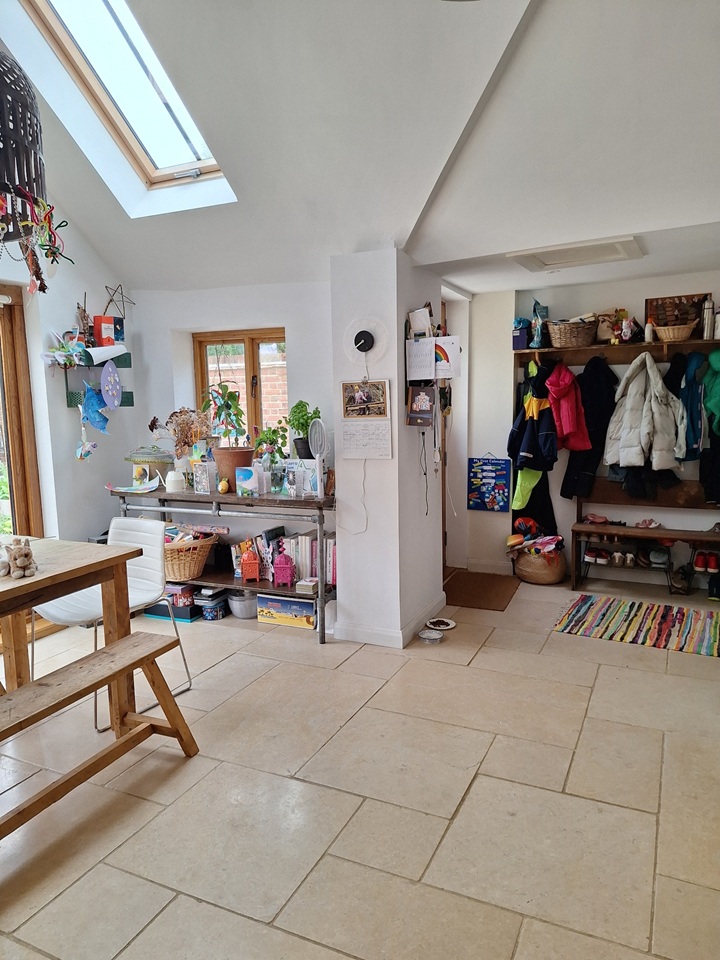 Our house has two upstairs bedrooms and a playroom / snug / guest bedroom downstairs. It has an historic sitting room with old beams and fireplace with stove, and a large, light and recently modernised kitchen leading to a private south-facing courtyard with planters and a greenhouse.