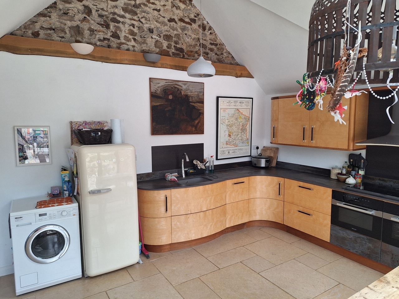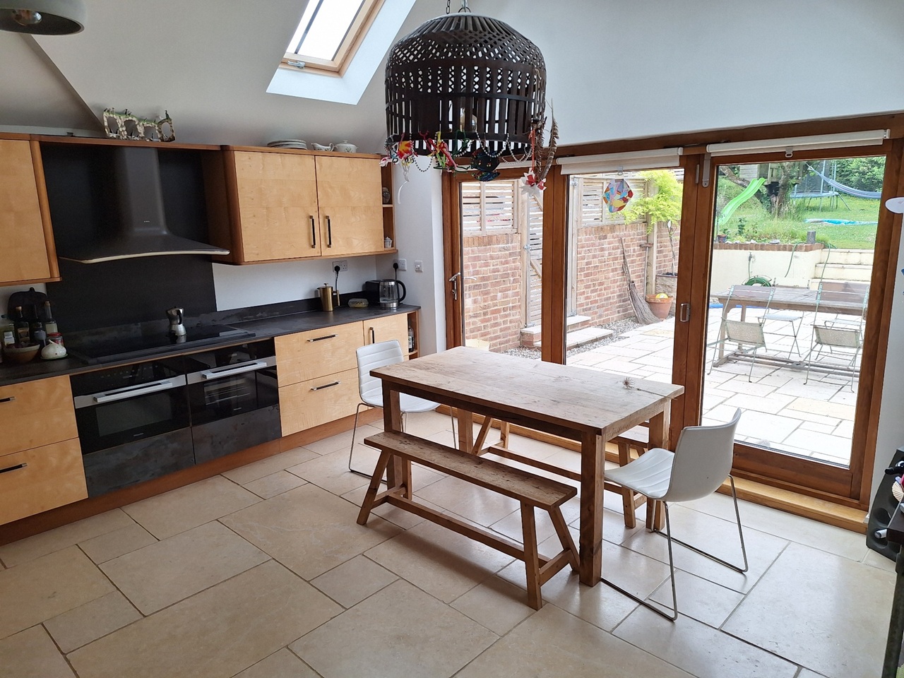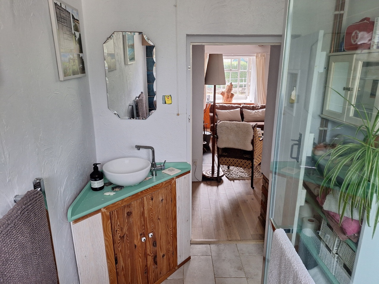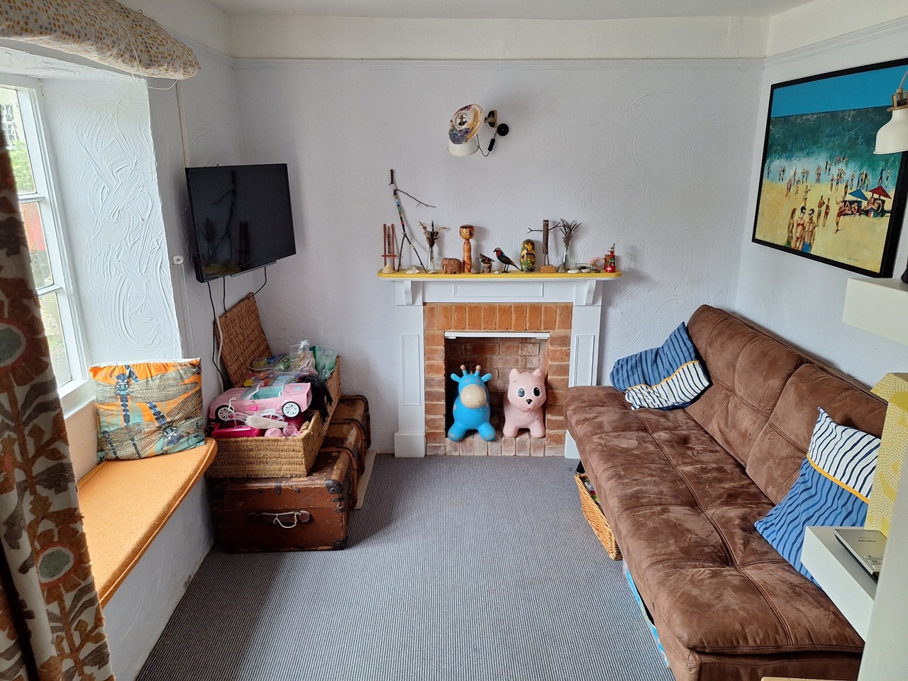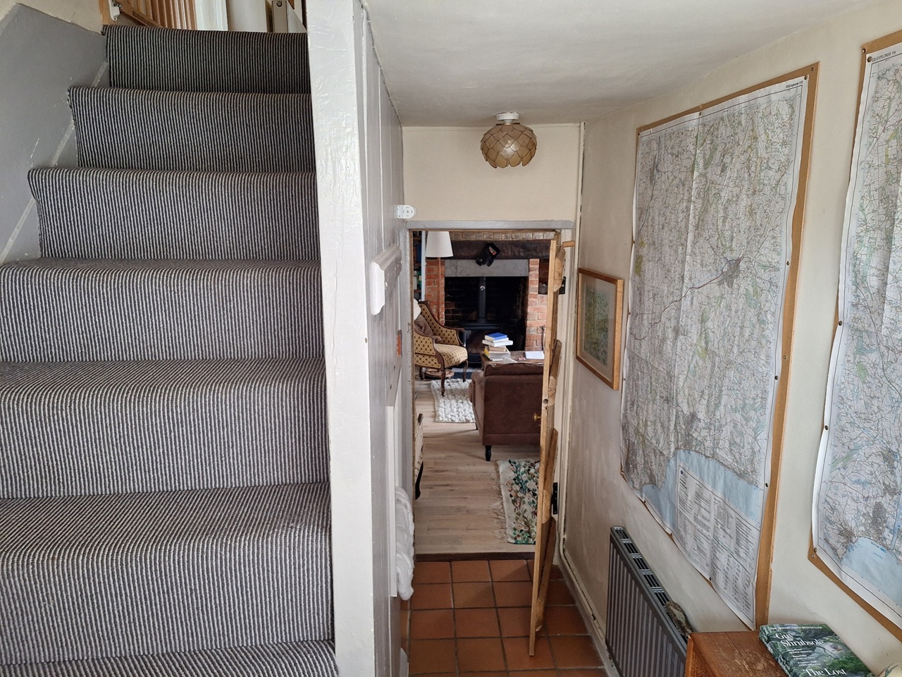 Our house has two upstairs bedrooms and a playroom / snug / guest bedroom downstairs. It has an historic sitting room with old beams and fireplace with stove, and a large, light and recently modernised kitchen leading to a private south-facing courtyard with planters and a greenhouse.