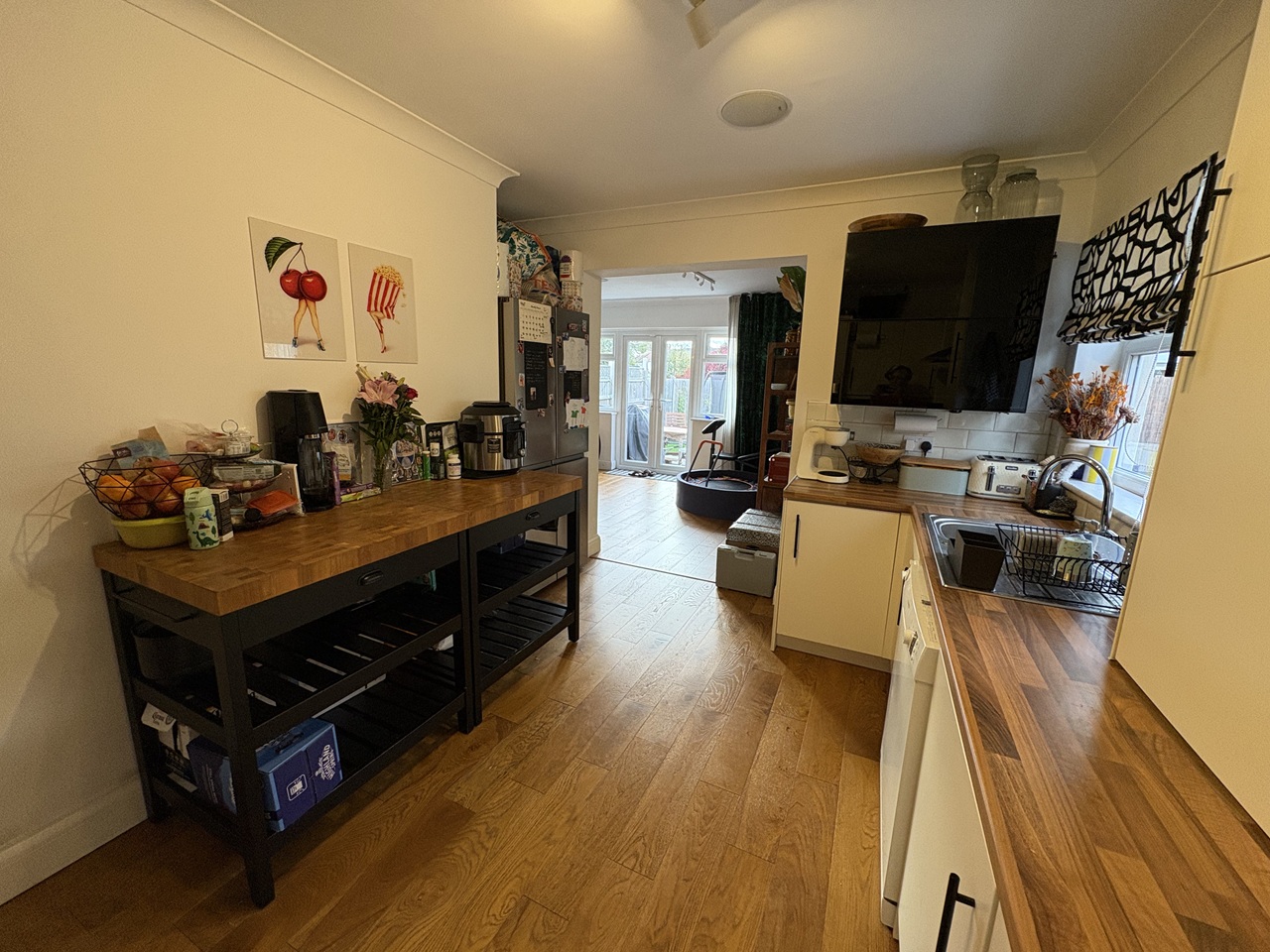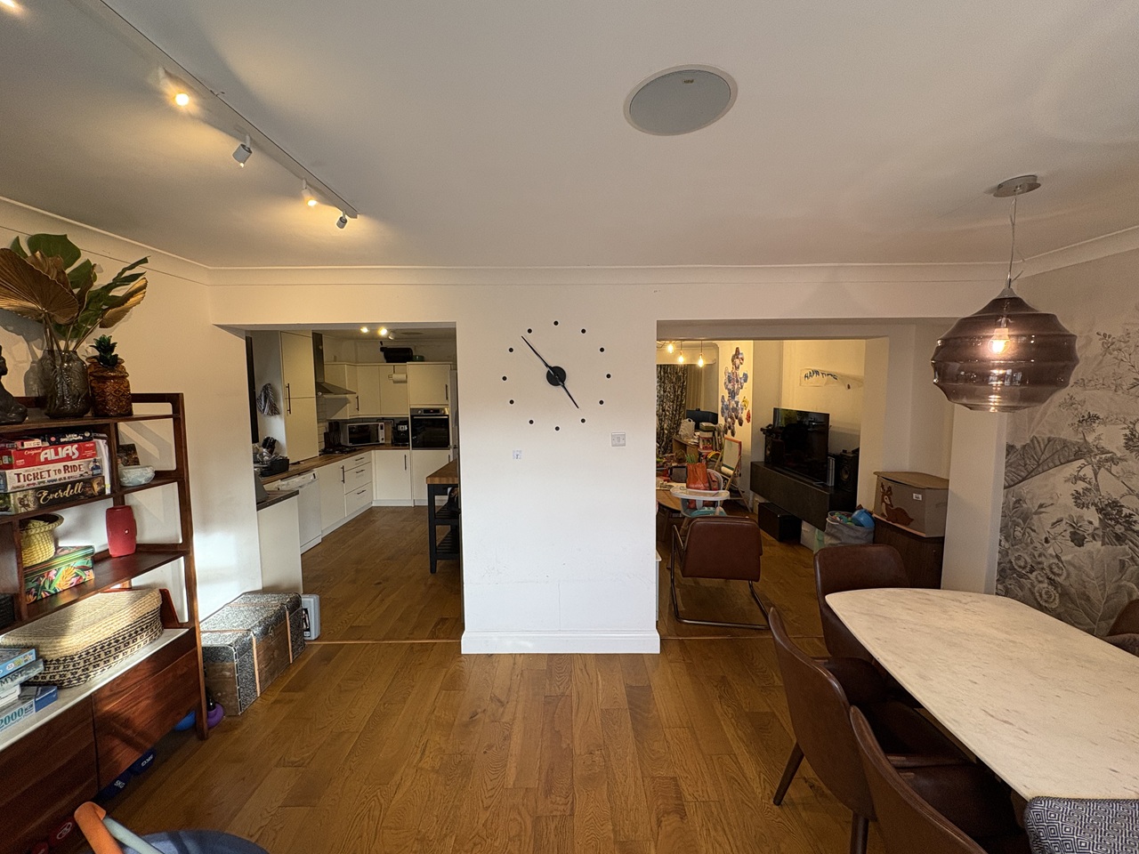Ground floor comprises large living room, dining room (in extension), kitchen and bathroom with shower