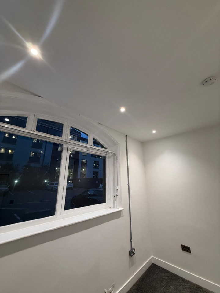 Retreat to the tranquil bedroom, which boasts a plush, deep-pile grey carpet for ultimate comfort and a striking feature arched window that floods the room with light.