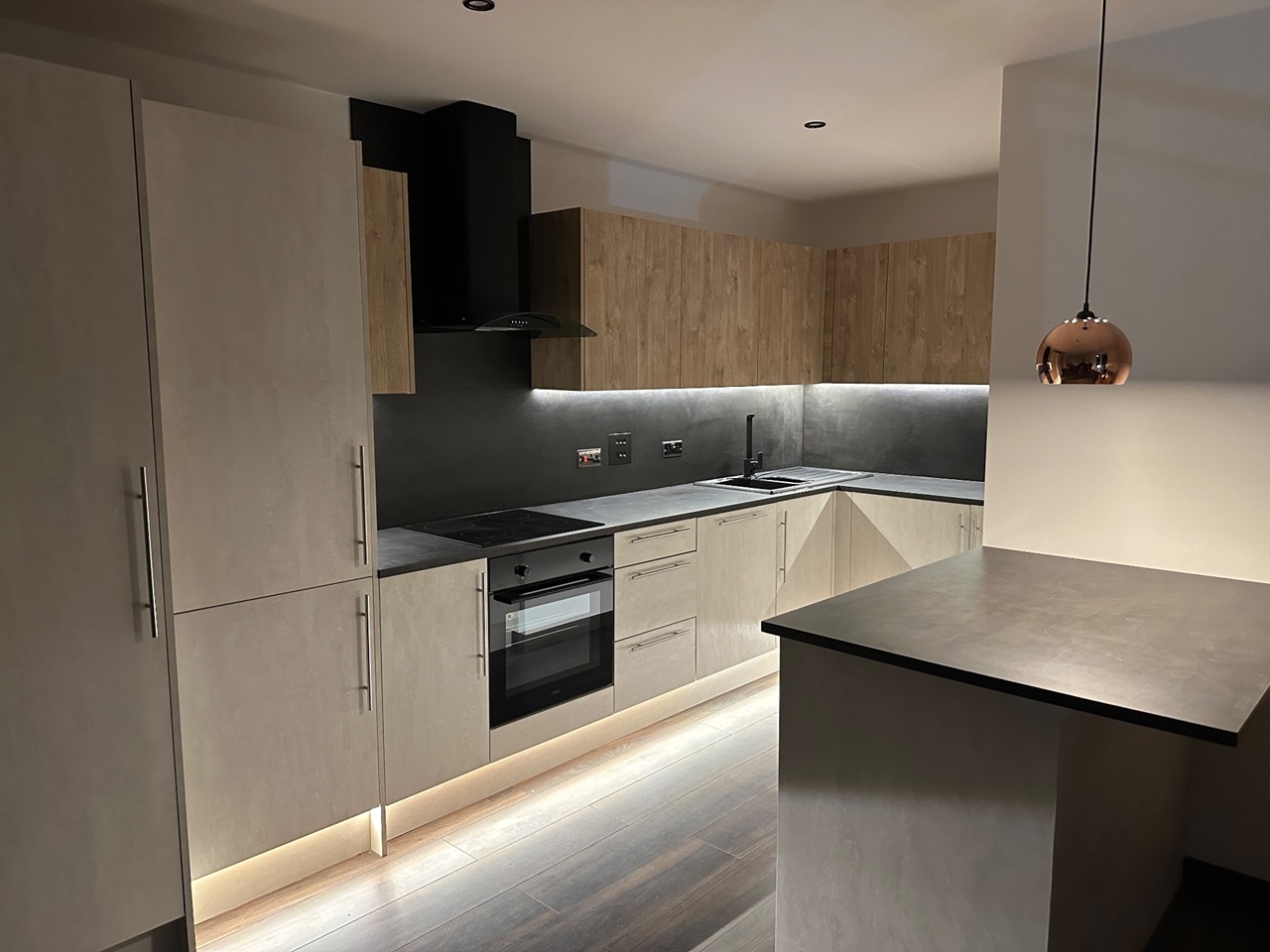 This residence boast generously designed spaces, complete with integrated appliances in bespoke kitchens and a built-in sound system in the living area.