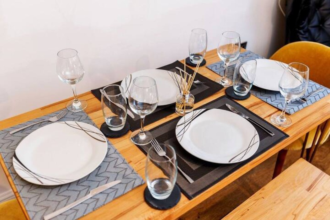 Fully equipped kitchen: cooker, oven, microwave, toaster, kettle, refrigerator/freezer, dining table - perfect for even longer stays when you’d like to cook.