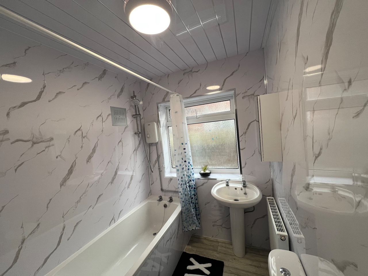 Bathroom with Bath and Electric Shower
