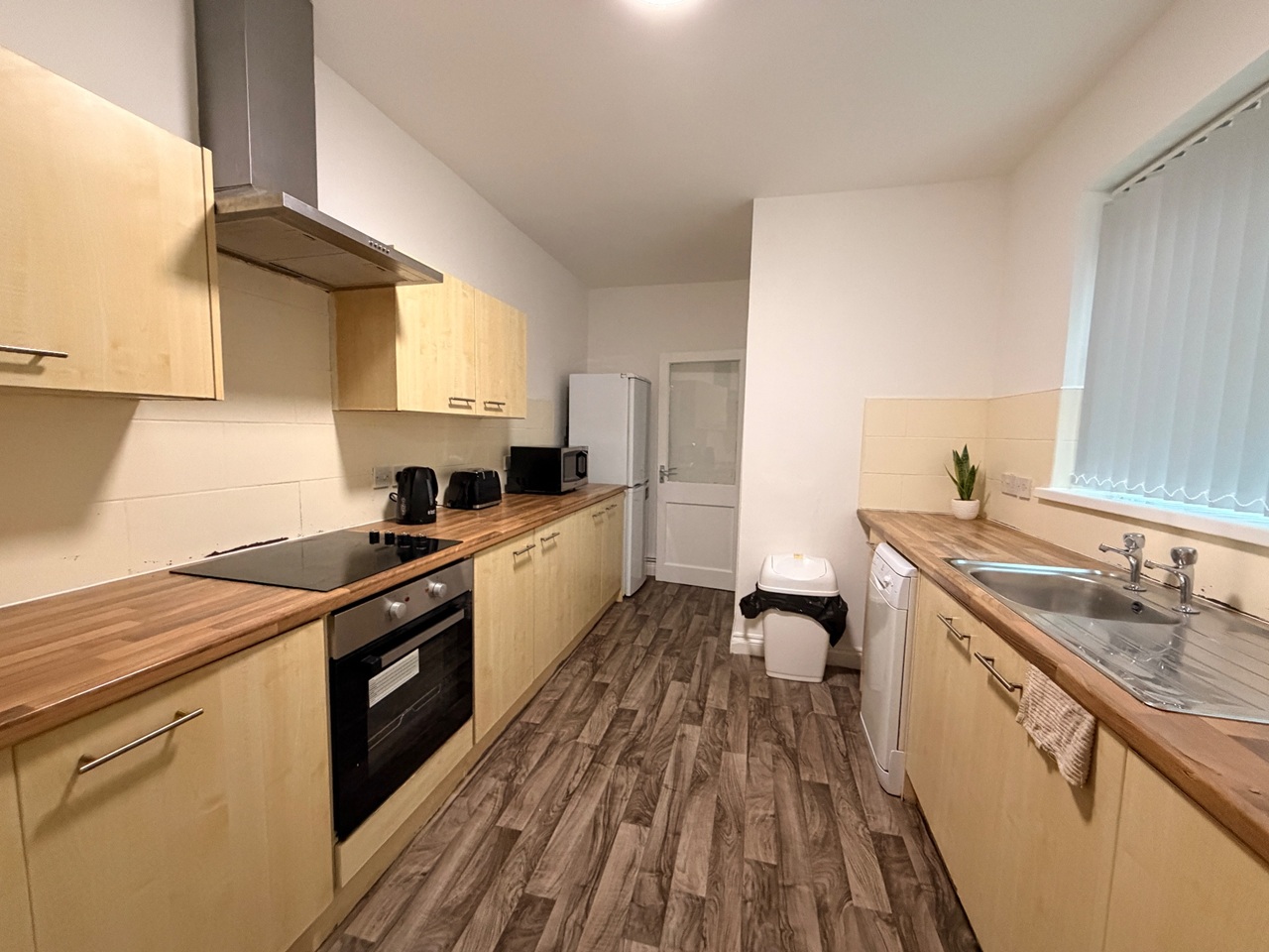 The property offers four good-sized bedrooms, a comfortable communal living area and a modern fitted kitchen with ample storage and worktop space, and a separate utility room. The bathroom is well maintained and practical for shared living.