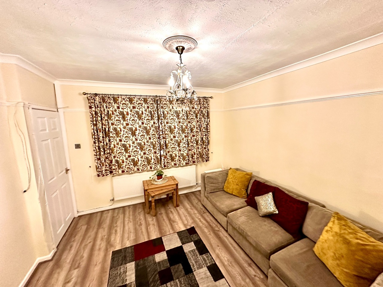 At the heart of this charming, cosy home is a well-equipped, multi-purpose, extended kitchen-diner. It's versatile because its very spacious, so can bend & flex with the practicalities of dining, play &/or hobby space. It has an, easily cleaned ceramic-tiled floor. Royal-blue wall & floor units & wood-effect food-prep surfaces are plentiful. This room has a venetian blind, feature lighting & an essential storage closet. The adjacent lounge has; a second dining area, green plants, laminate flooring, mirrors, art-work, floor lamps & massive rug. A large DG window maximises light & privacy. Every room has a controllable radiator, each has extra insulation to retain precious heat. Thumb-turn locks are fitted.