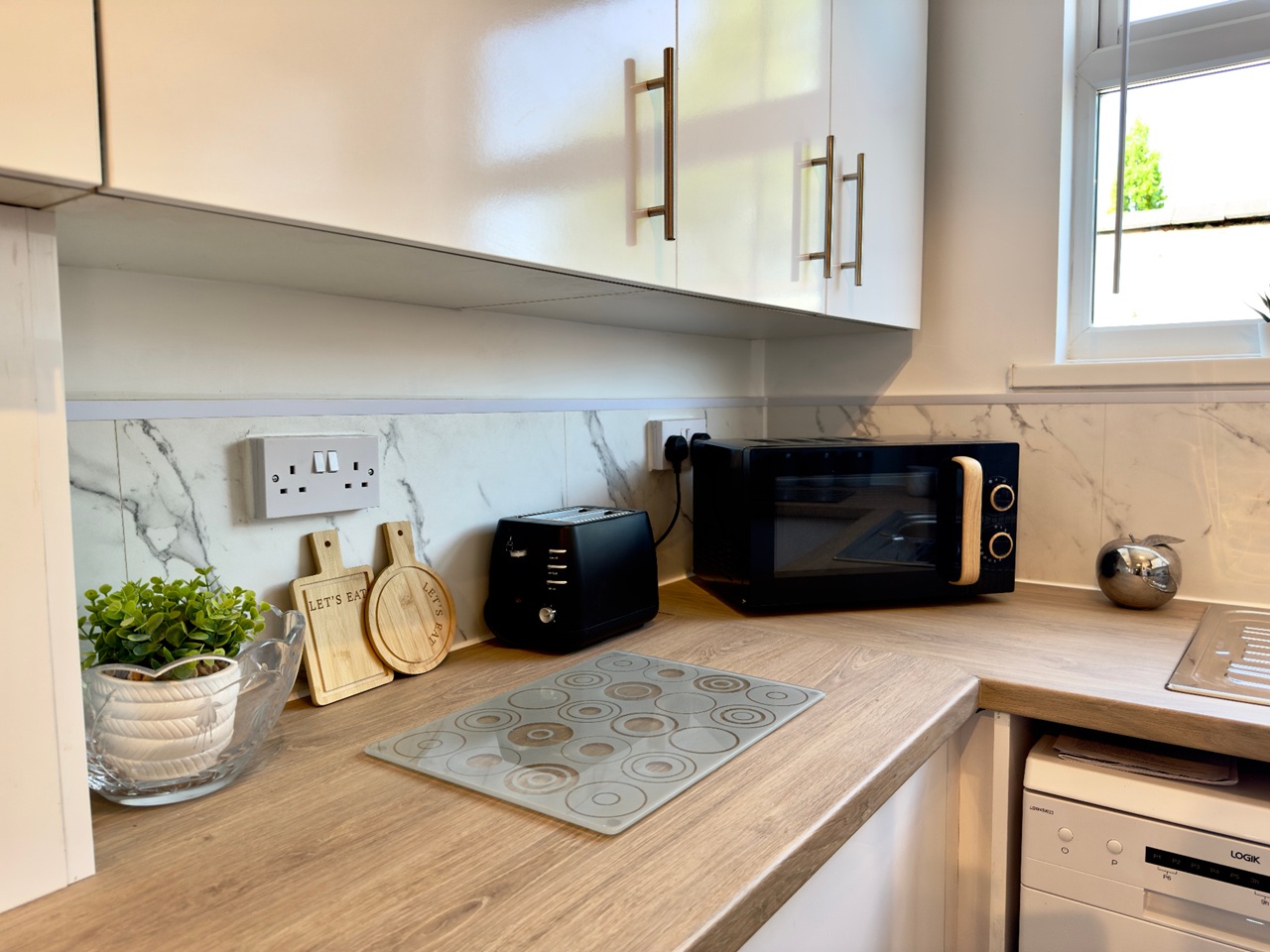 Microwave, kettle, toaster