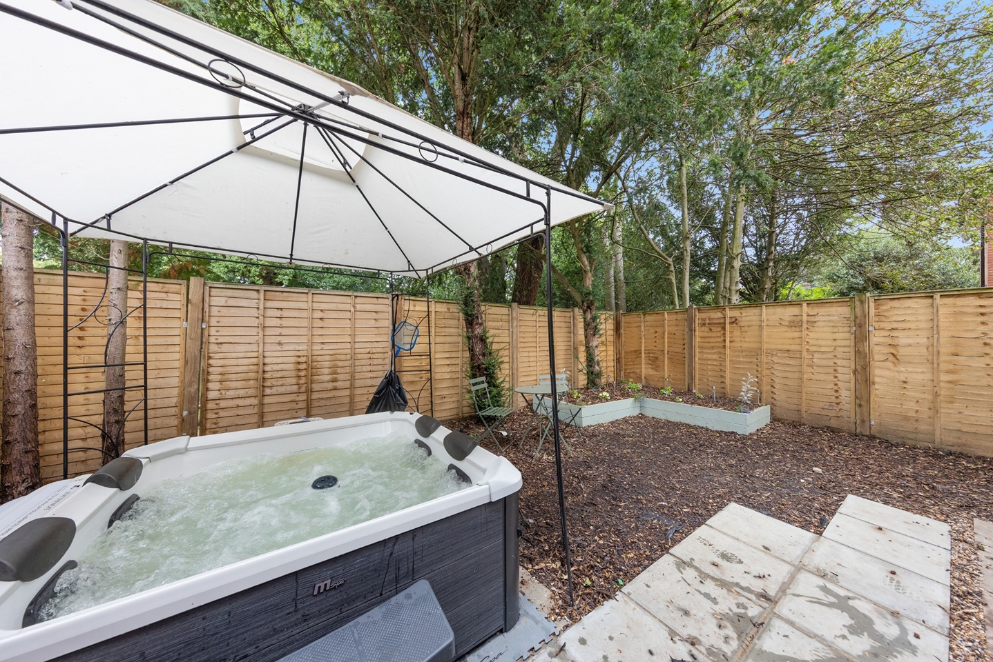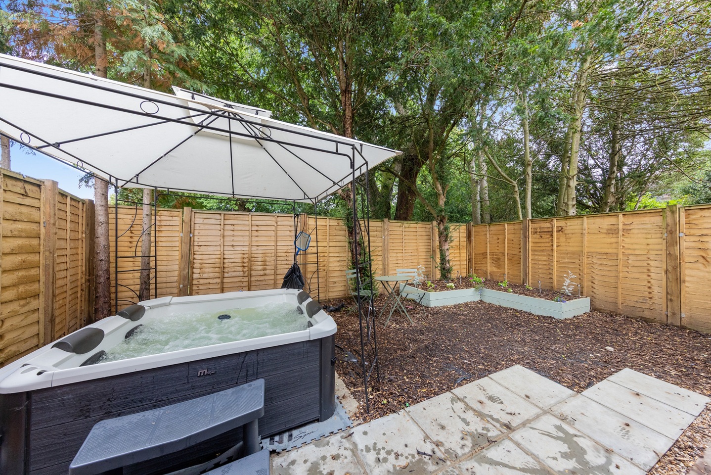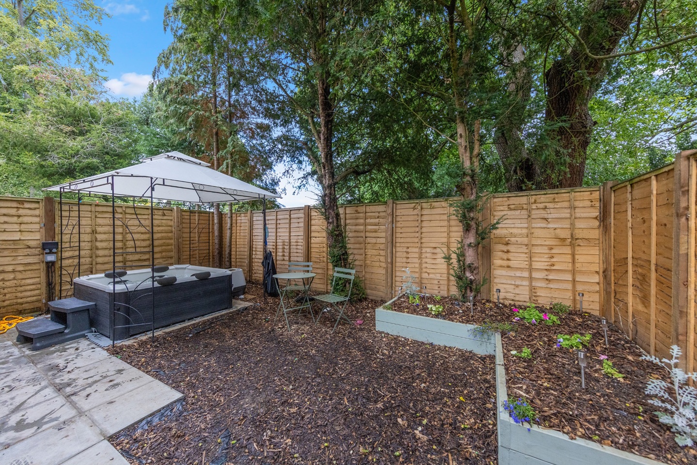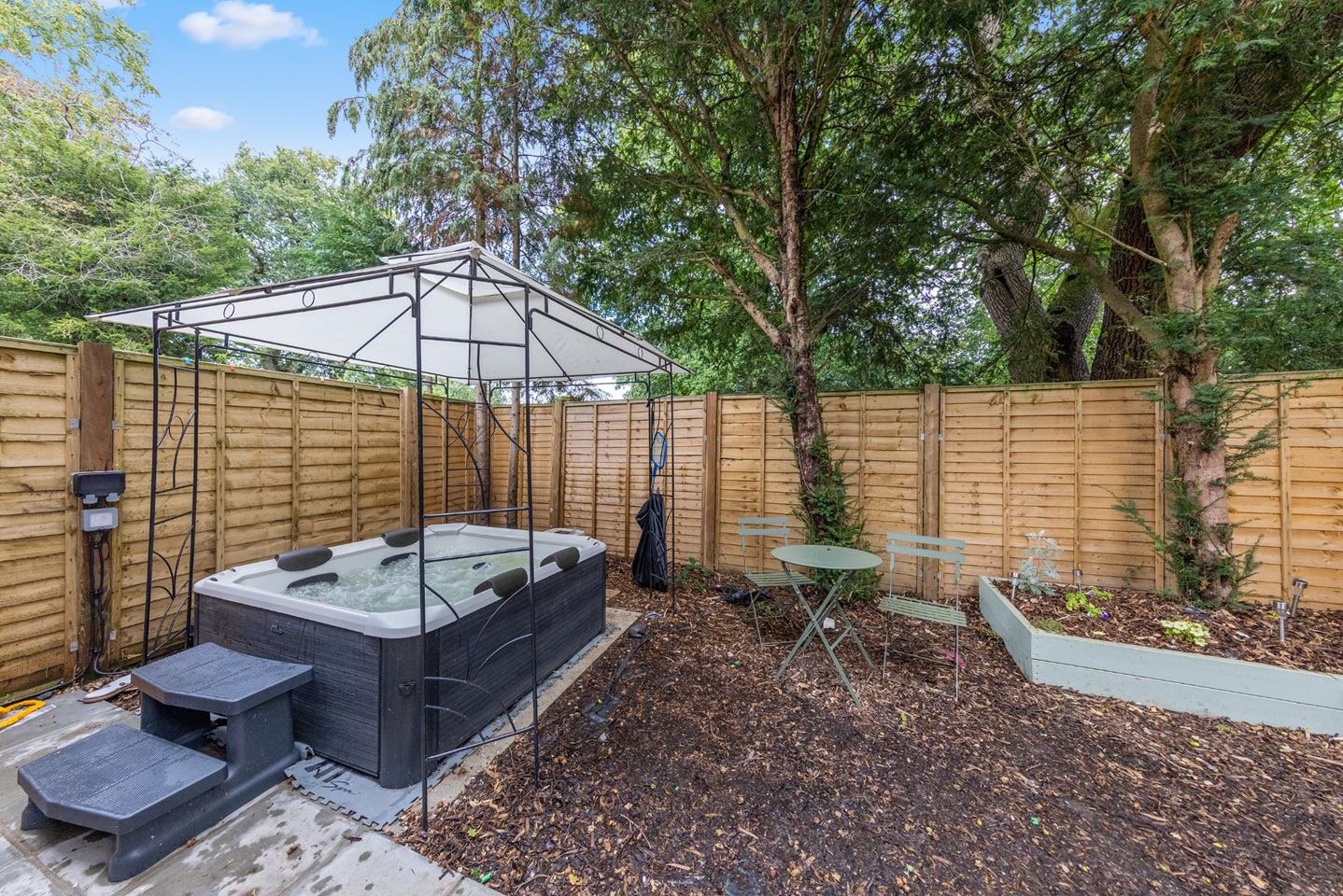 - Private garden with hot tub (quiet hours 10pm–8am)