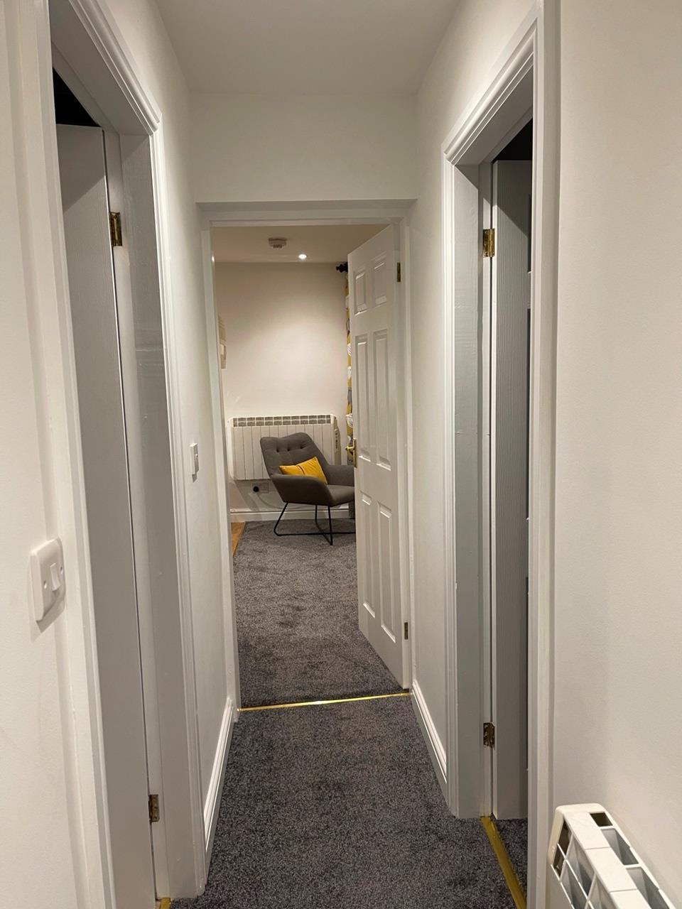 Leading off to single bedroom with Farho electric thermostatic radiator.