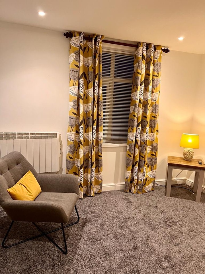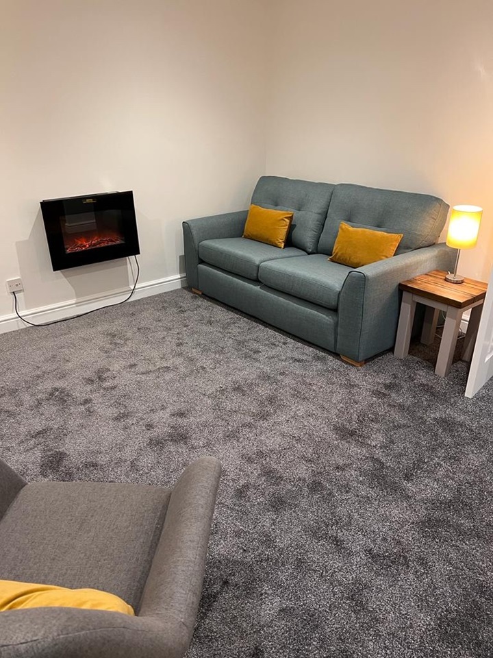 Lounge area furnished as shown in picture -all brand new furniture & curtains. LED downlights.Remote controlled wall mounted electric fire & programable farho thermostatic heater.