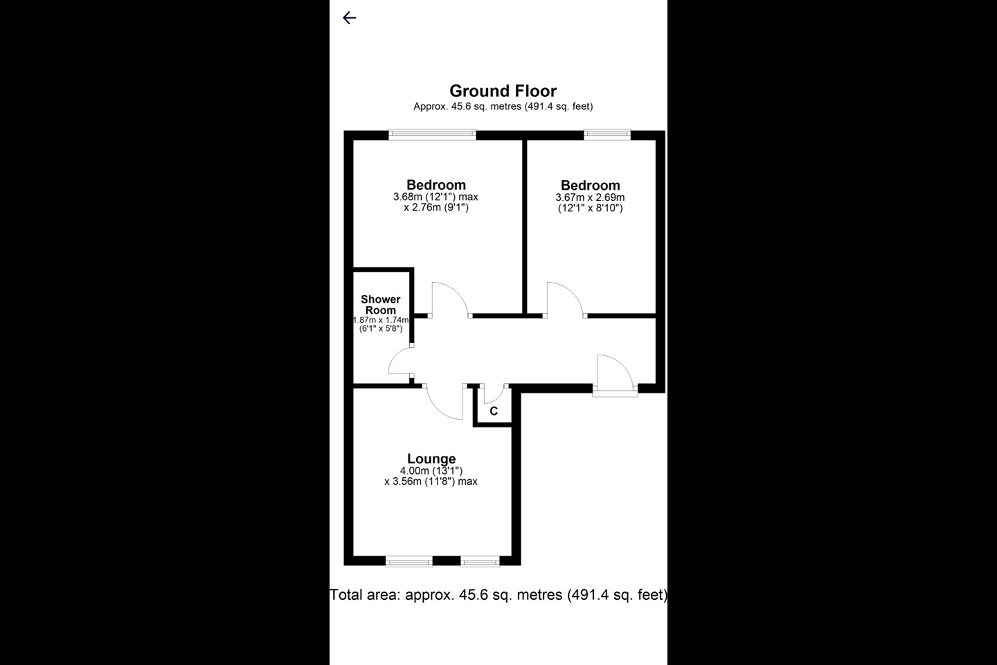- Bedroom 1: 3.68m x 2.76m