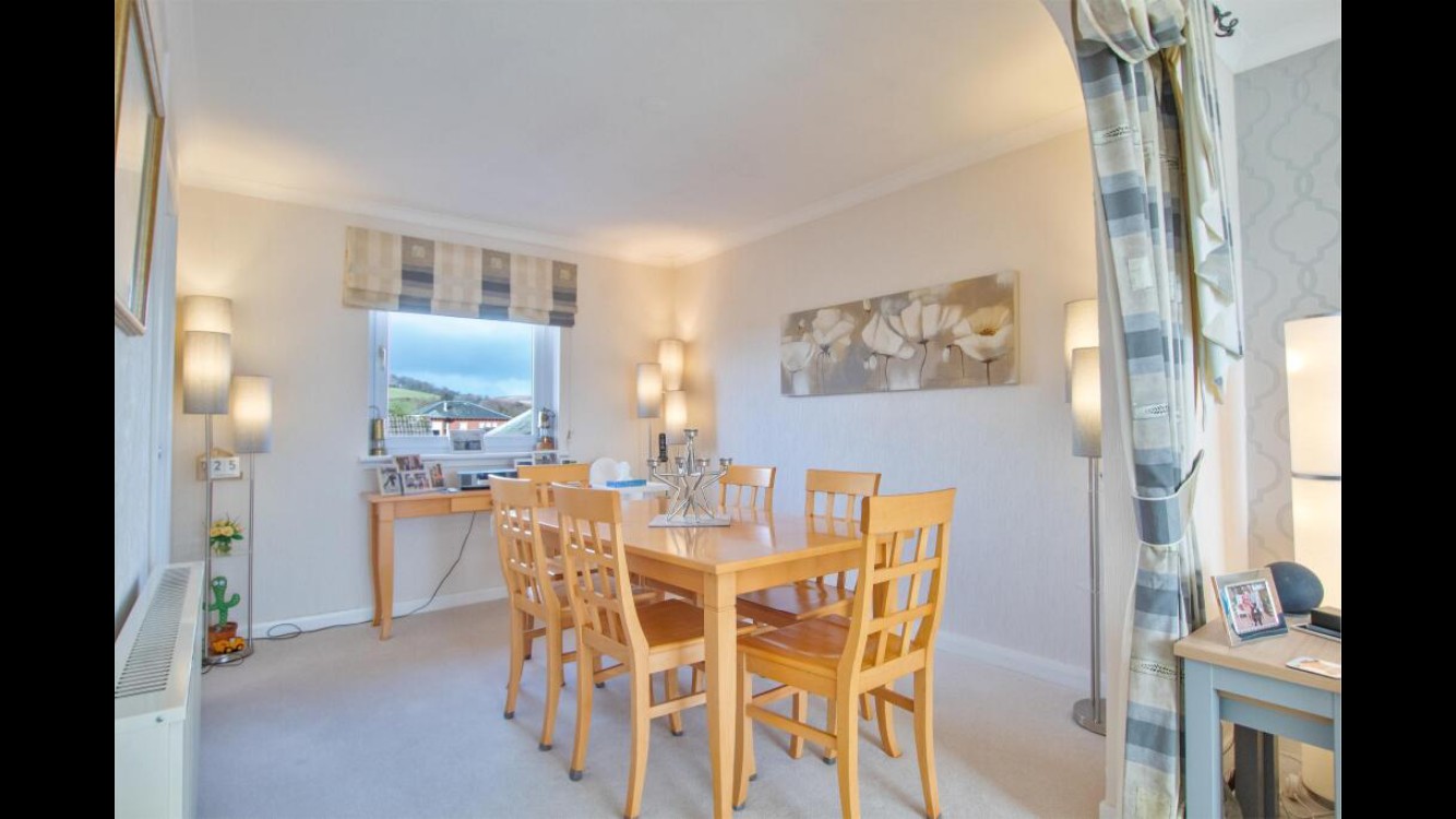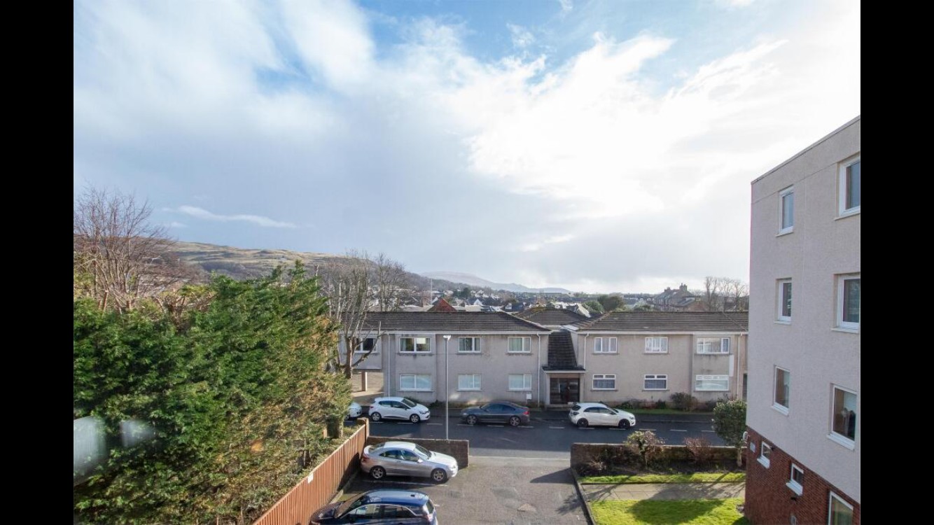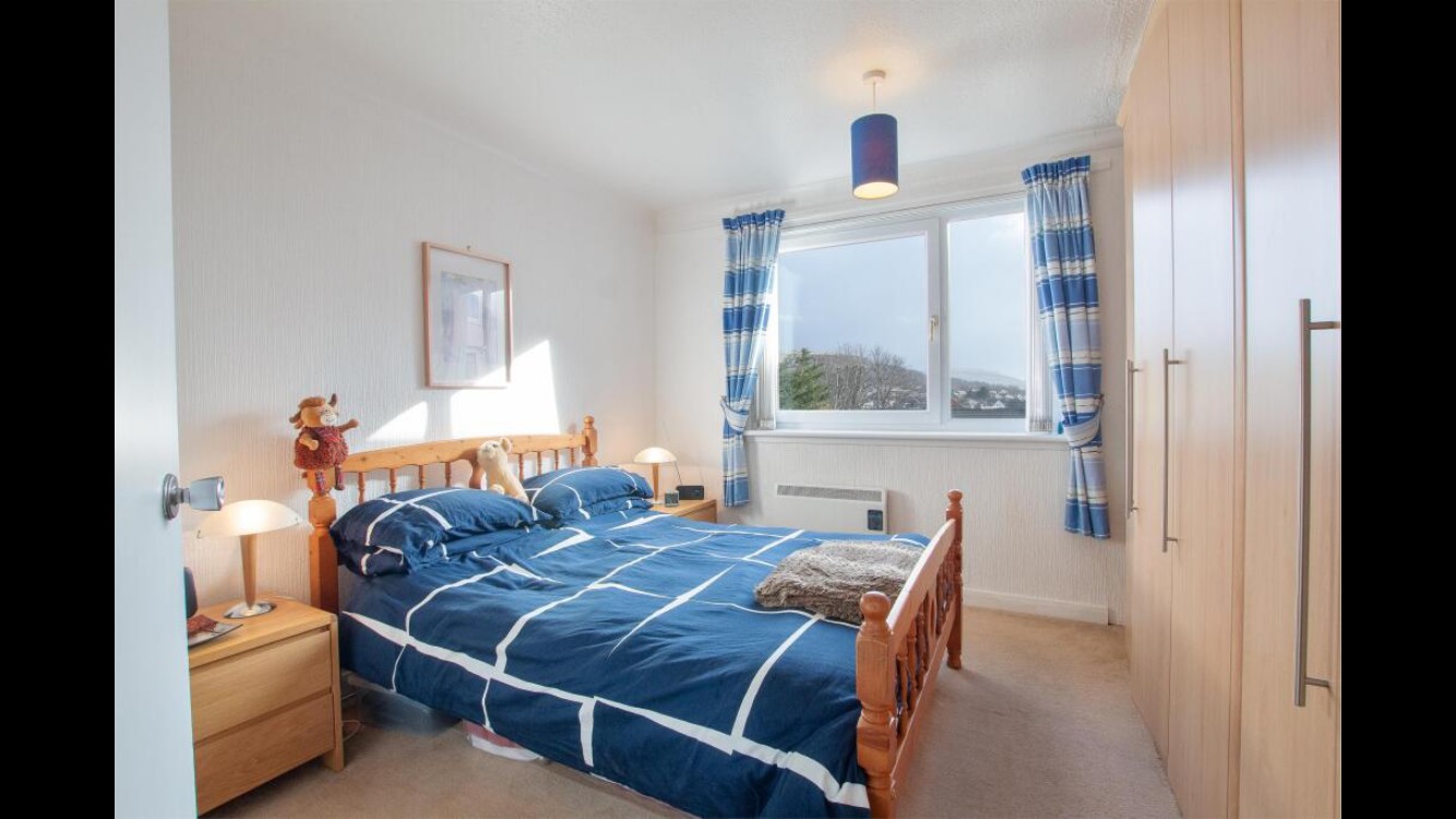 In detail the accommodation on offer comprises a communal entrance hallway entered via secure entry phone system that gives stairway access to the apartment. Upon entering, a reception hallway with a walk in store and a further storage cupboard gives access to a lounge/dining room spanning the full width of the flat. Two picture windows give excellent elevated views to the north and south of Largs. The kitchen is accessed from the lounge and is fitted with a range of wall and base units with appliances to include dishwasher, electric cooker, washing machine and fridge/freezer which are included. The property has three double bedrooms, two with built in wardrobe storage. All the bedrooms have excellent elevated views. There is a shower room fitted with a modern three piece suite to include WC, wash hand basin with vanity unit and shower cubicle with electric shower.
