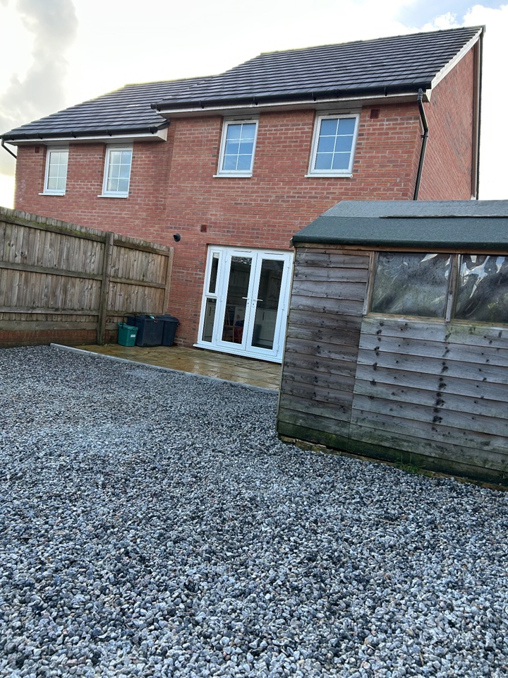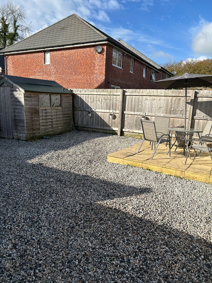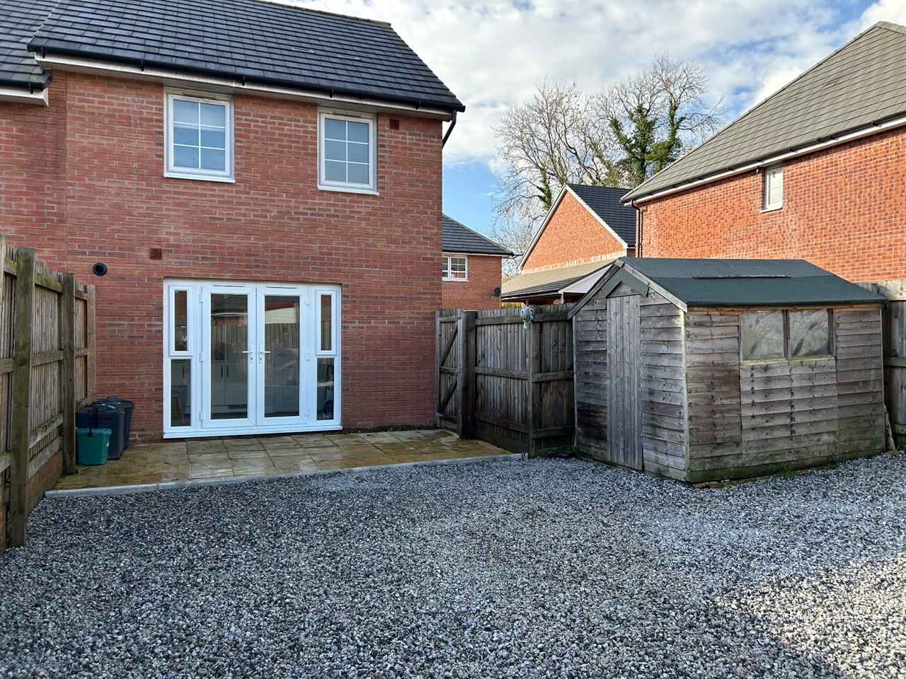 There are patio doors which lead into a private garden with patio area and a shed.