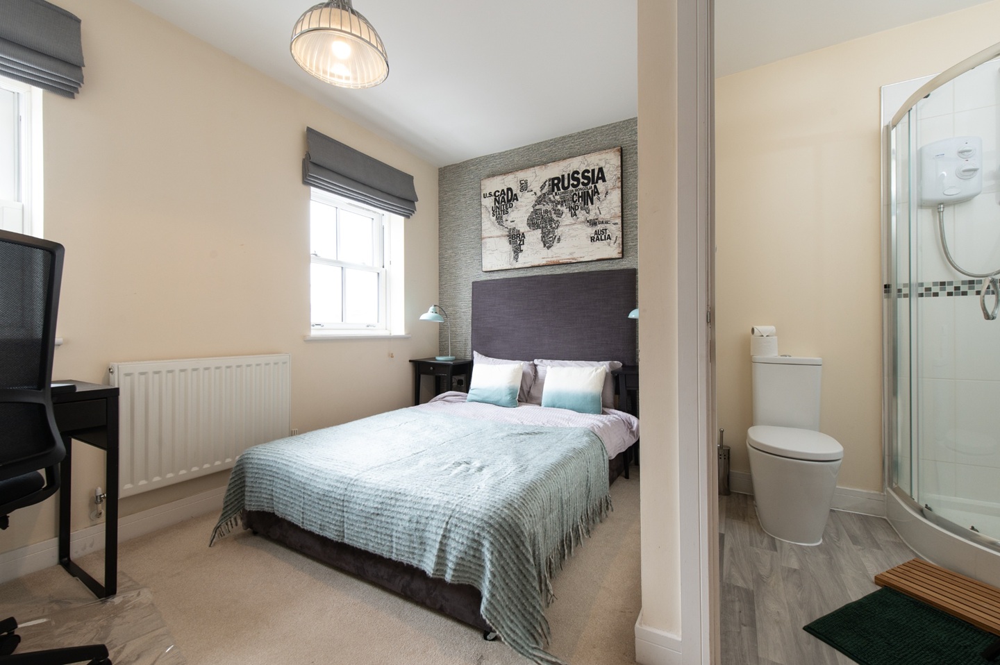 Four Luxury Bedrooms & Four BathroomsEach of the four double bedrooms offers hotel-style comfort with premium bedding, quality mattresses, blackout blinds, and generous storage. Every room has its own bathroom, with either en-suite or private access, offering convenience and privacy for families or corporate sharers.