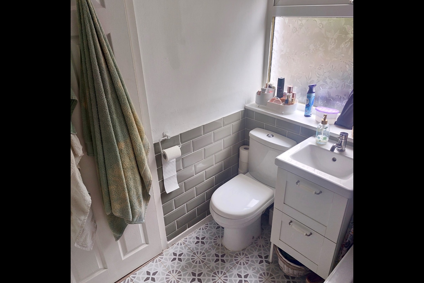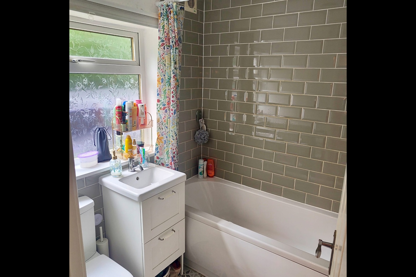 Modern 3 piece bathroom with window and heated towel rail