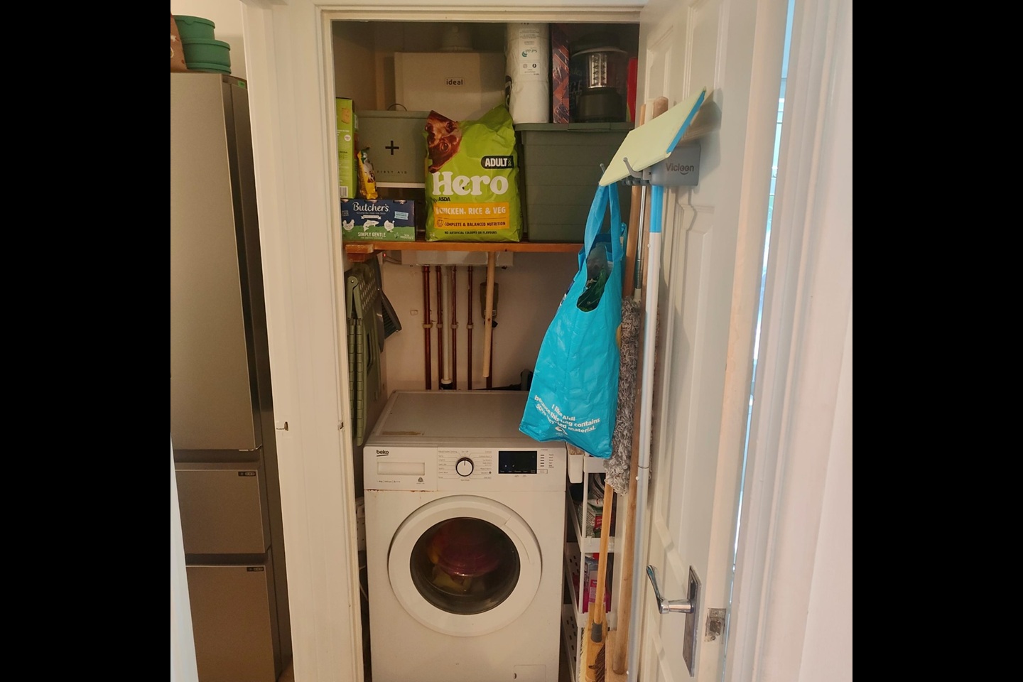 Storage cupboard with plumbing for washing machine