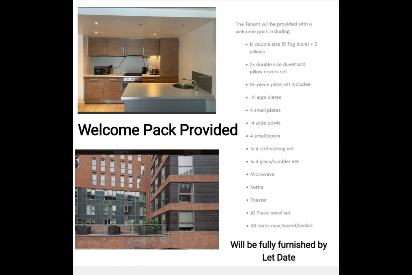 The property will be provided fully furnished with the following: