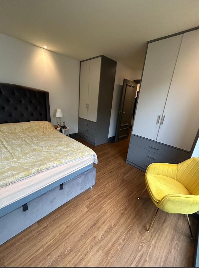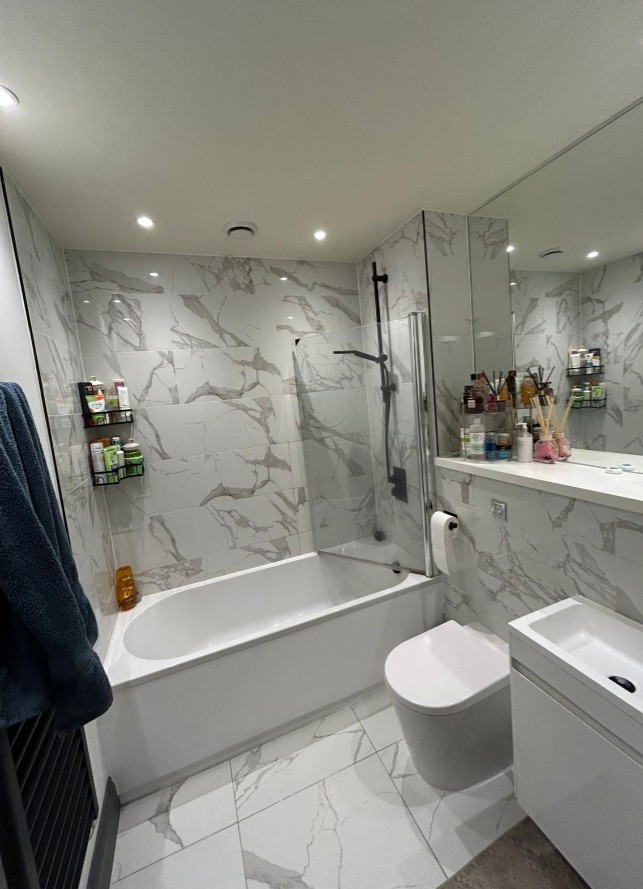 Contemporary style finishes: integrated kitchen appliances, quartz worktops, marble finishes in kitchens and bathrooms.