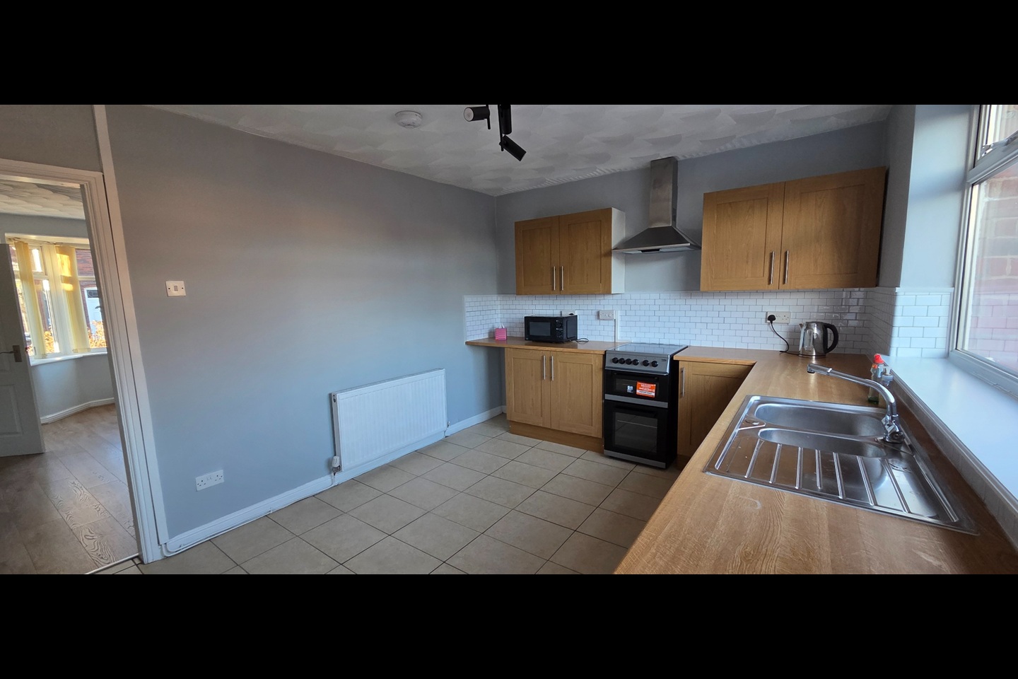 This property is an ideal home for a couple, friends sharing or a family. The ground floor houses the entrance hallway leading to the living room which has newly fitted laminate flooring and then through to the kitchen with newly installed oven and extraction fan.