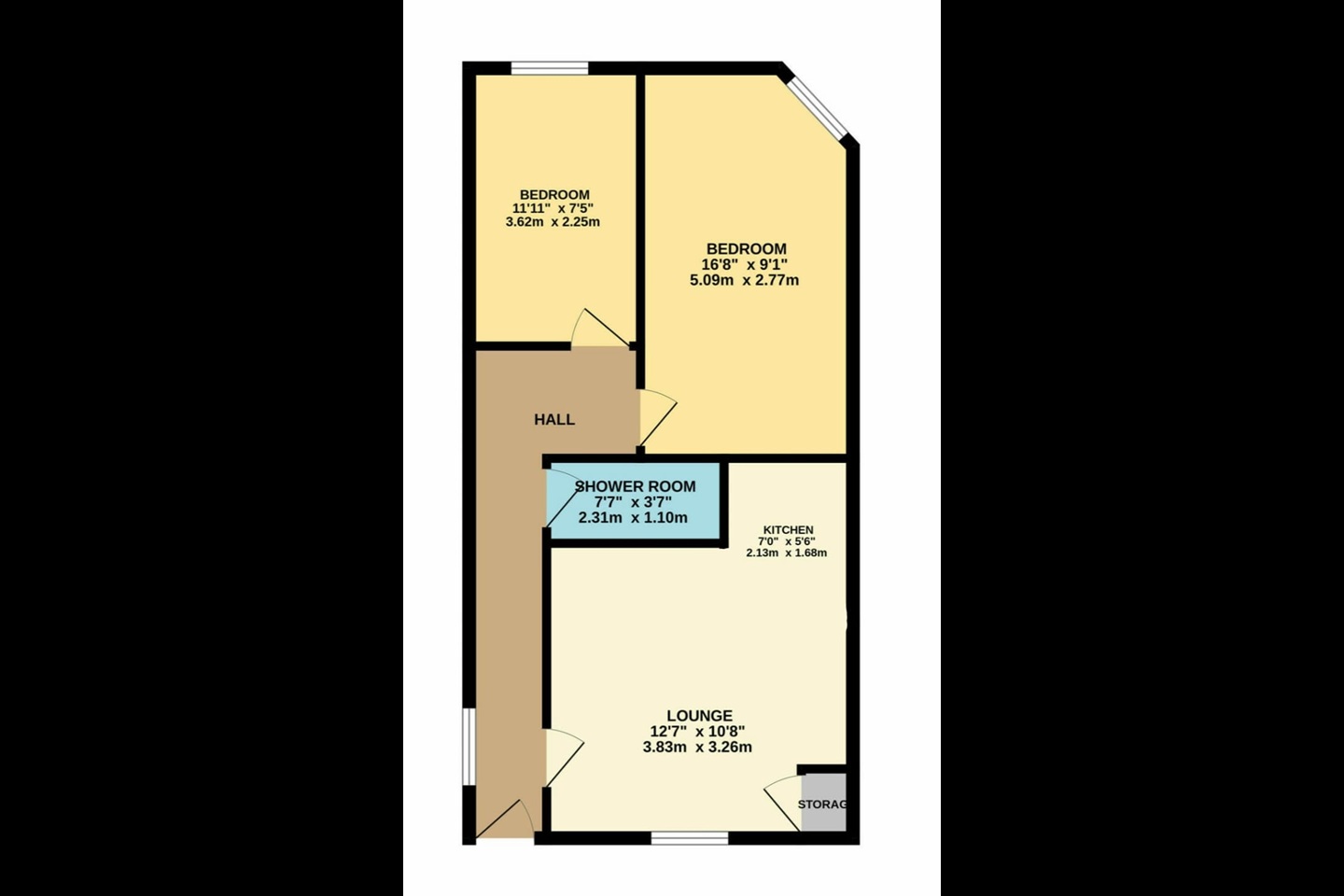 - 2 bedrooms