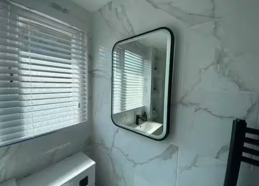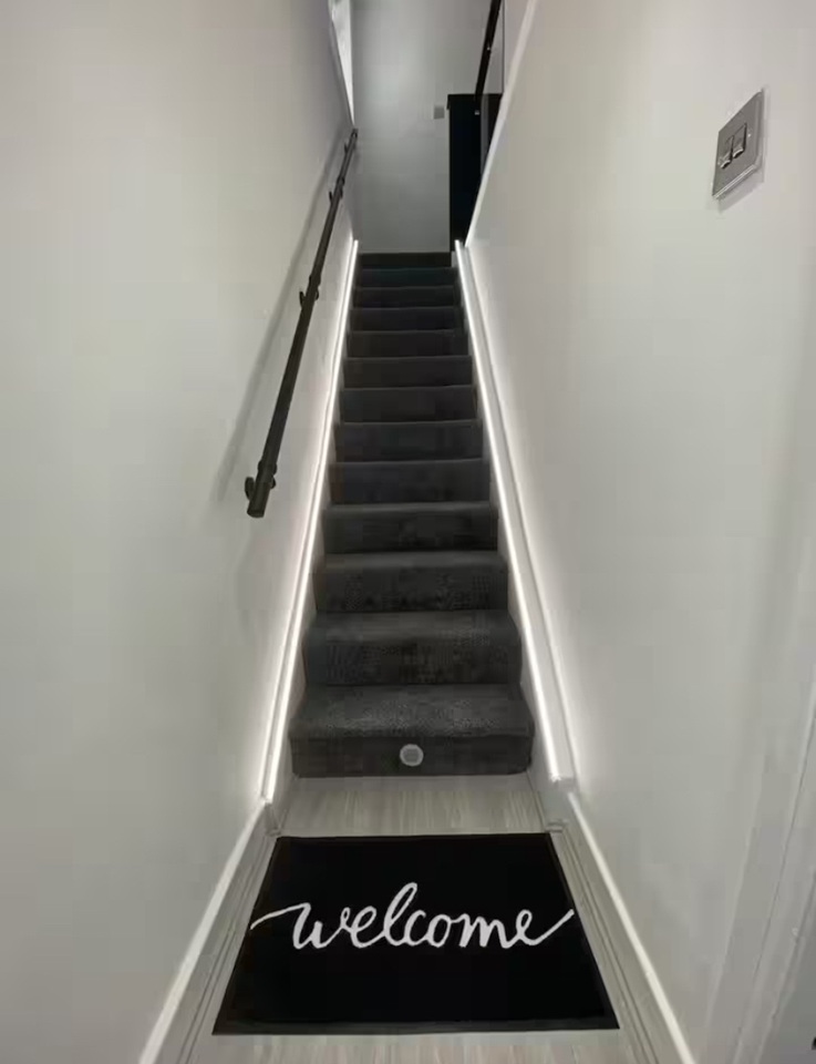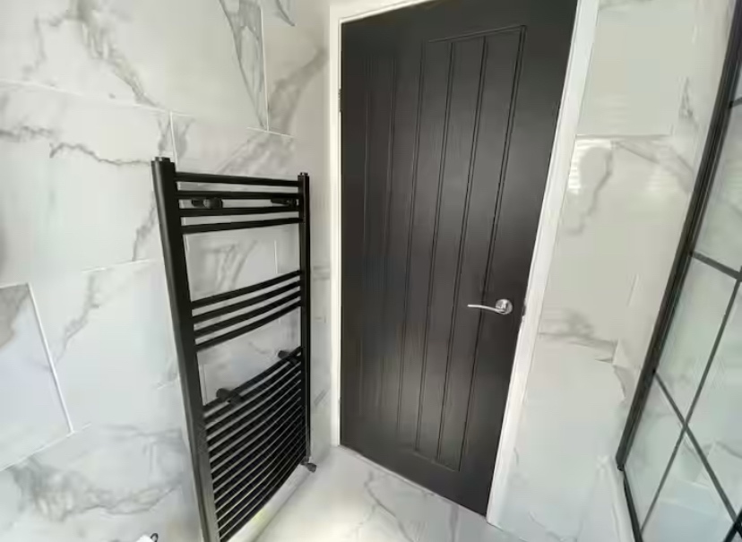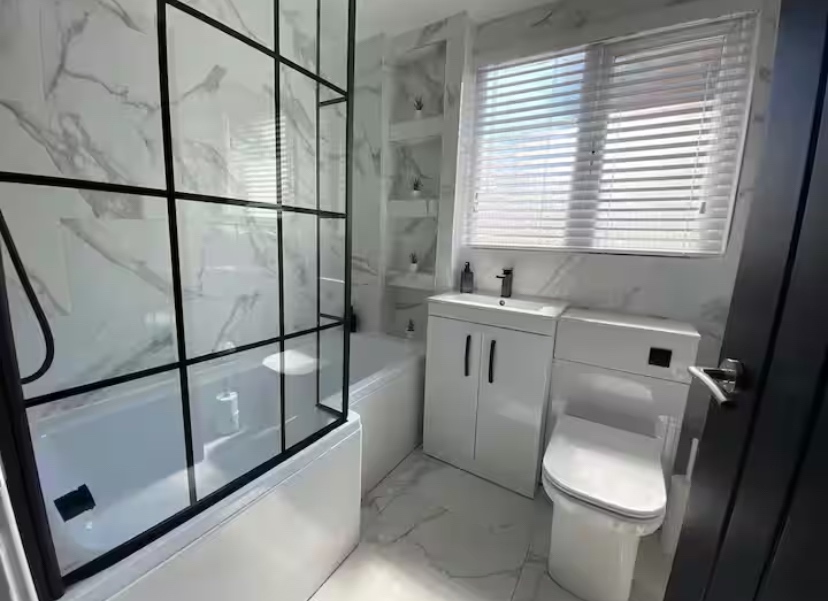 Leading upstairs, the staircase continues the modern feel with a stylish glass balustrade, adding a sleek, contemporary finish to the upper level. Upstairs, the property continues to impress with a fully refurbished family bathroom, finished to a high standard and featuring an L-shaped bath, a top-of-the-range electric shower, and a LED anti-steam mirror. There are also three well-proportioned bedrooms, all offering excellent space and natural light.