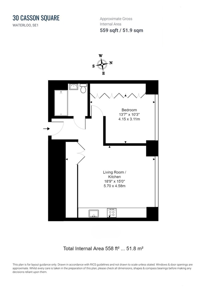Thirty Casson Square is located on the Southbank in the heart of London's cultural district with the BFI IMAX, Southbank Centre, Royal Festival Hall, Old Vic Theatre, Hayward Gallery and National Theatre all nearby. Southbank Place benefits from an onsite entrance into Waterloo Station for the Jubilee, Northern, Bakerloo, Waterloo & City line and mainline trains. The apartment is conveniently located for the City, Canary Wharf and the West End via the Jubilee Line.