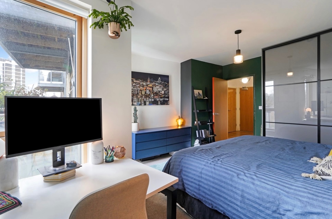Apartment is offered furnished with super king sized bed featuring hotel quality mattress. Lots of storage throughout the flat including under bed storage. Kitchen is equipped with Delonghi bean to cup coffee machine. Artwork and small furniture (dining table set & work/office table) can be removed on request.