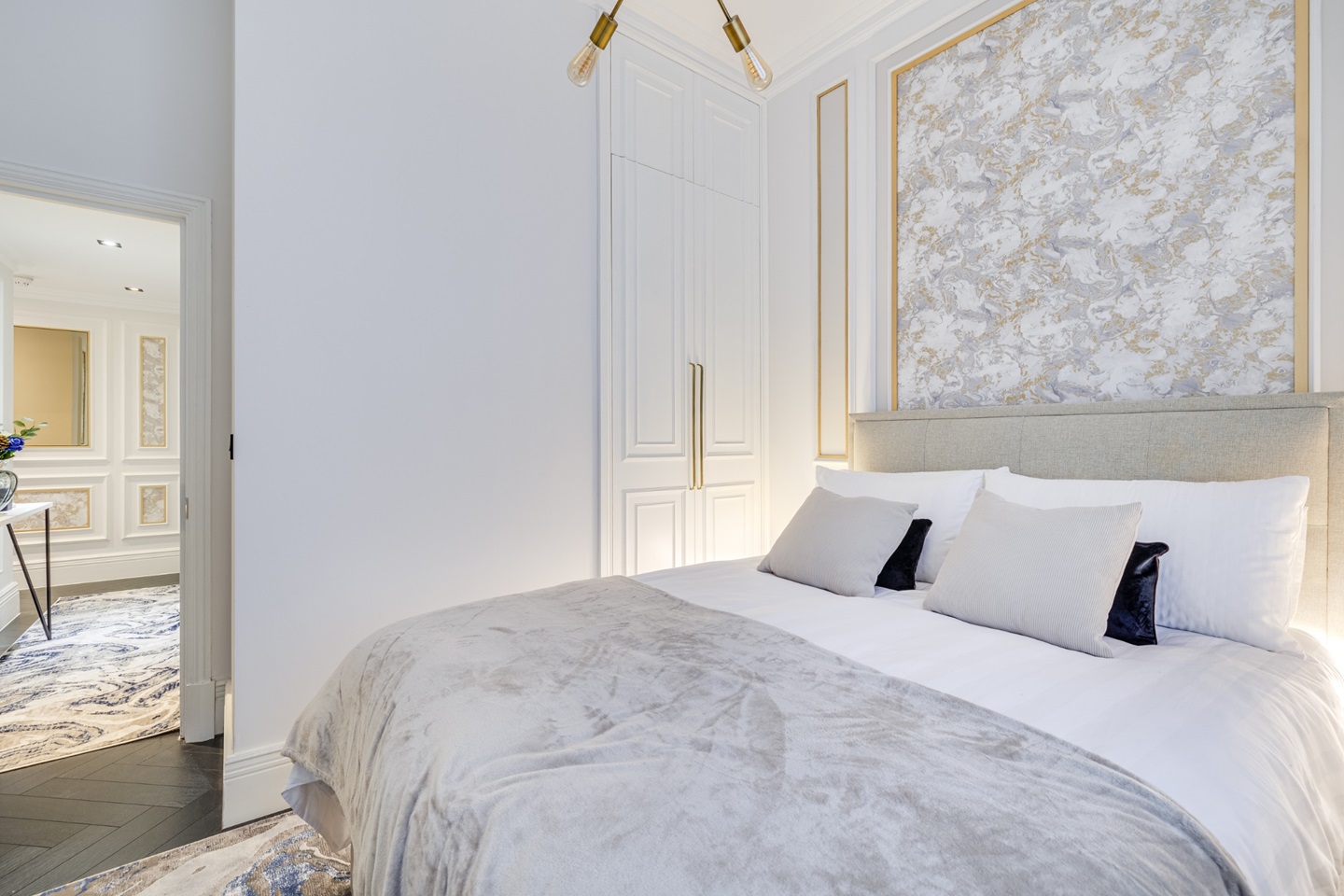 Square Footage: 572 sq ft. Situated on the first floor of an impressive period building centrally located in St James's and minutes walk to St James's Park and transport links this bright apartment has been newly redecorated and furnished to a high standard and benefits from high ceilings with herringbone flooring throughout.