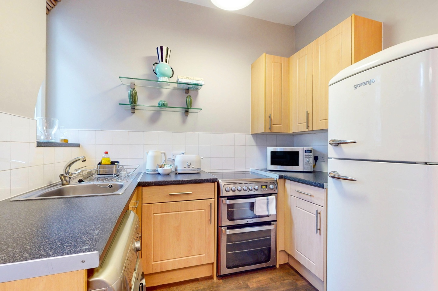 The kitchen is fully equipped and designed for everyday cooking. The flat also benefits from fast Wi-Fi and good storage throughout, making it well suited to longer-term living.