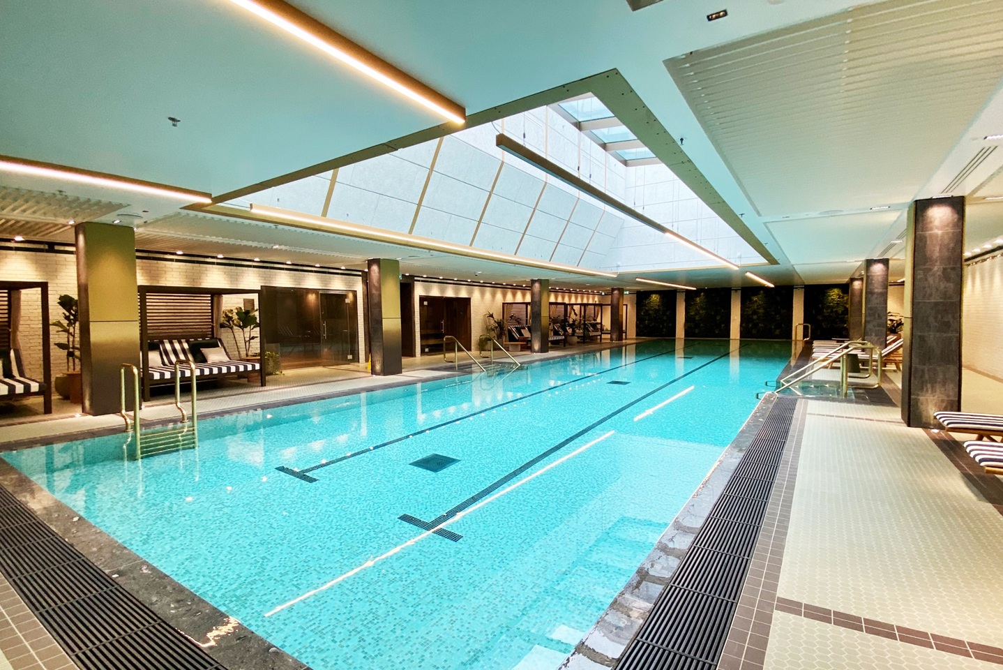 Residents will benefit from a 24-hour concierge and onsite fitness facilities including a 25m swimming pool, vitality pool, steam room and sauna, gym and fitness studios. Further facilities include a games room, virtual golf room, two cinemas, private meeting rooms, a private dining room, and a residents’ lounge with an atrium courtyard garden. Secure cycle storage is also provided.